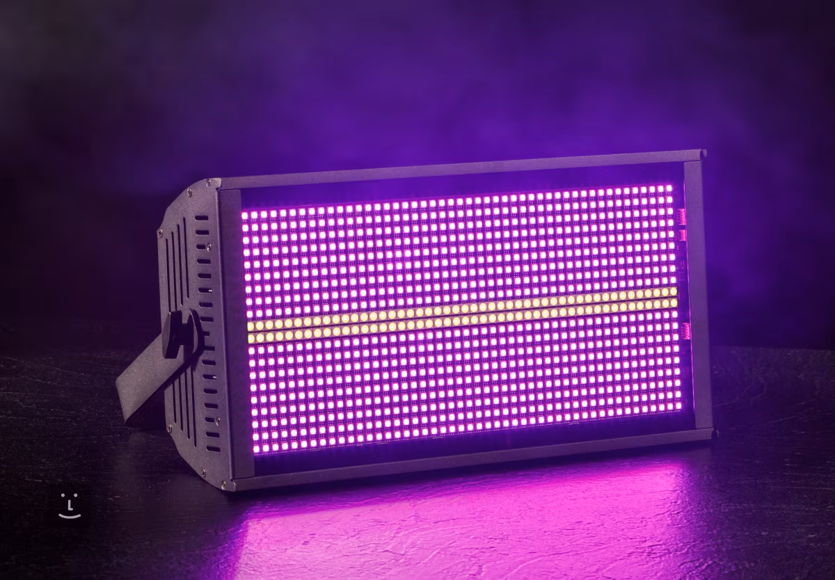 Der Lightblaster L960 von CentoLight ist ein einzigartiger LED-Scheinwerfer, der in erster Linie für Wash-Lighting und Strobe-Effekte entwickelt wurde. Er ist mit 960 LEDs - 96 weißen und 864 farbigen RGB-LEDs - ausgestattet und in 8 + 8 unabhängige Zonen unterteilt, die der Benutzer je nach Bedarf einrichten kann, wobei jede Zone einzeln oder über voreingestellte Programme gesteuert werden kann.