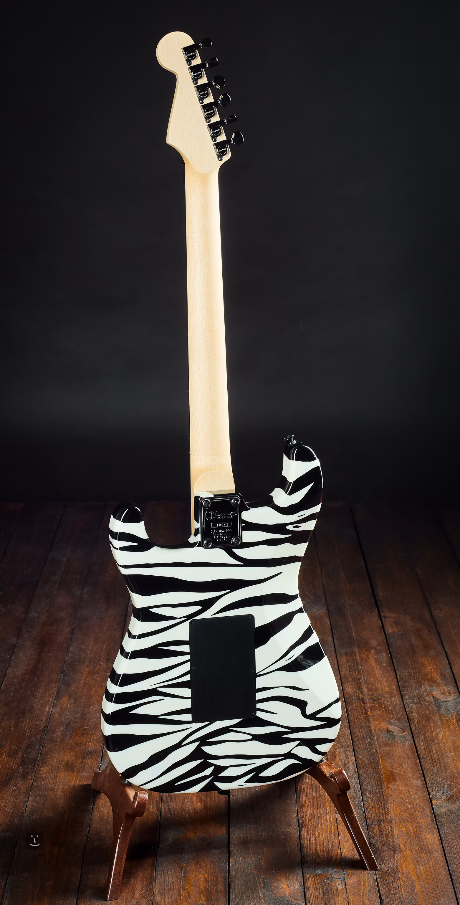 Ein handbemaltes (Hand Painted) Design dominiert das Aussehen dieser Super-Strat aus der Custom Shop Werkstatt von American Charvel. Es handelt sich um eine limitierte Auflage aus dem April 2025, also quasi um ein neues, bewährtes Instrument.