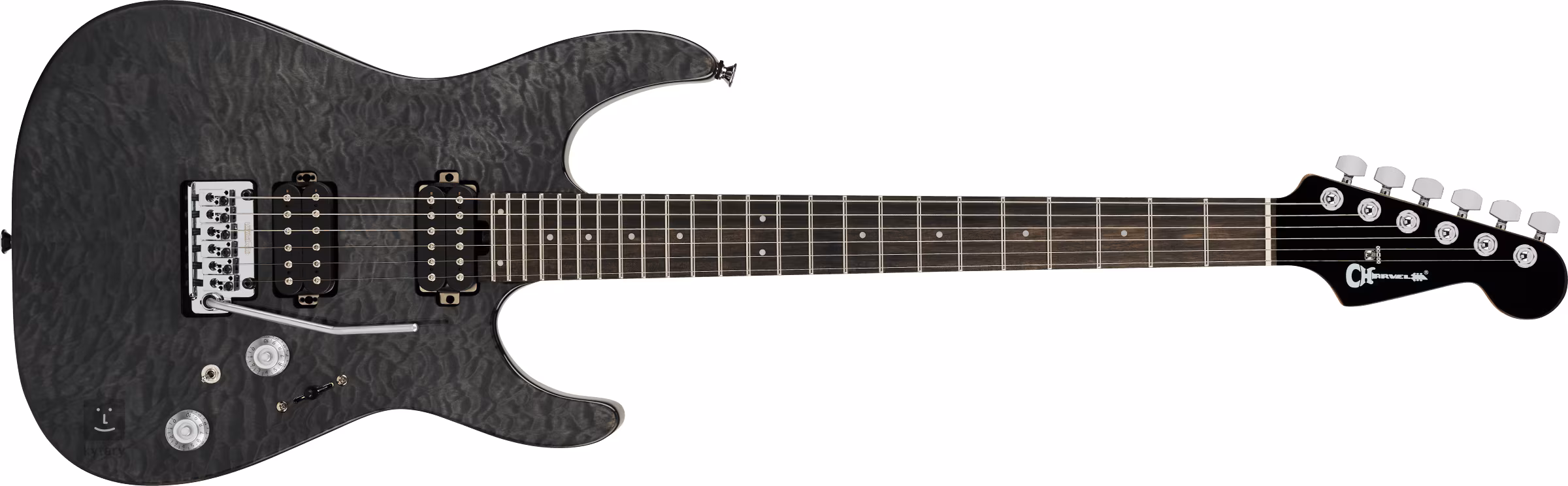Der ergonomisch geformte Korpus aus Lindenholz ist mit einer Decke aus Quilted Maple und einer Midnight Ocean-Lackierung verziert. Der Hals aus thermisch behandeltem „karamellisiertem“ Ahorn mit schnellem „Speed Neck“-Profil ist mit einem Ebenholzgriffbrett mit 24 Jumbo-Bünden aus Edelstahl versehen. Der Hals wird durch Graphitverstärkungen stabilisiert. Die Orientierung auf dem Griffbrett auch bei Dunkelheit erleichtern seitliche Leuchtpunkte.