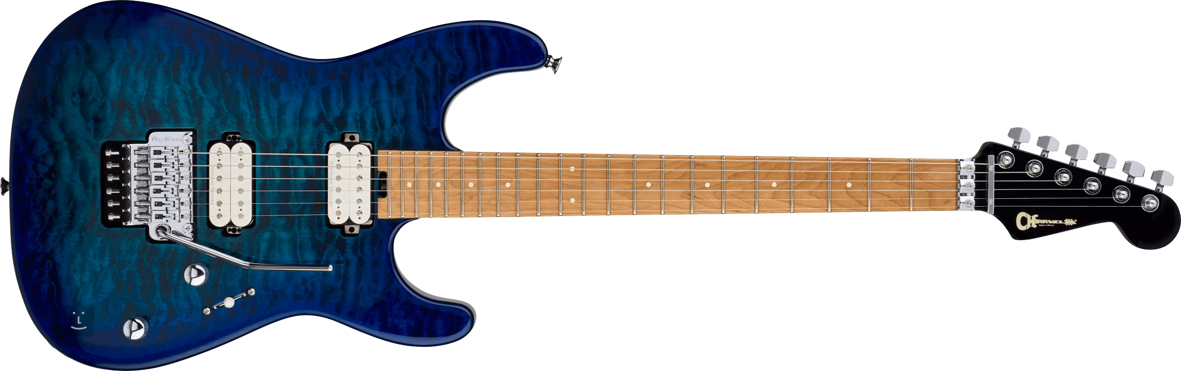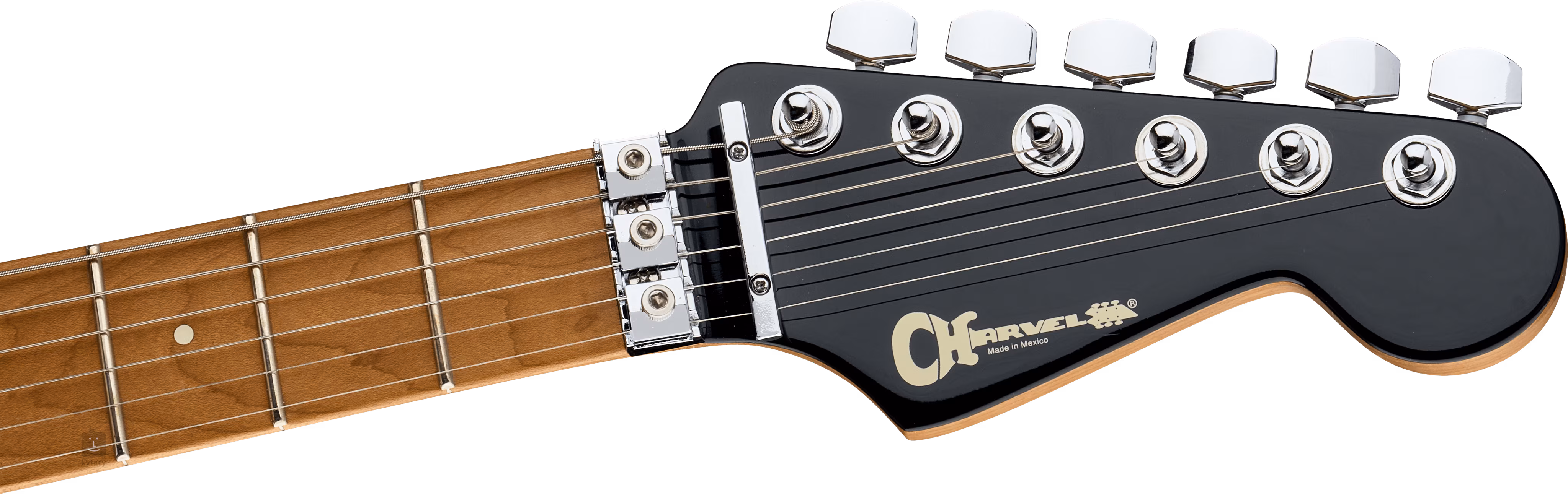 Die Pro-Mod Plus SD1 FR MN CHB E-Gitarre von Charvel ist eine Strat/Superstrat-Gitarre im Design der frühen 1980er Jahre, benannt nach ihrem Ursprungsort San Dimas, Kalifornien.