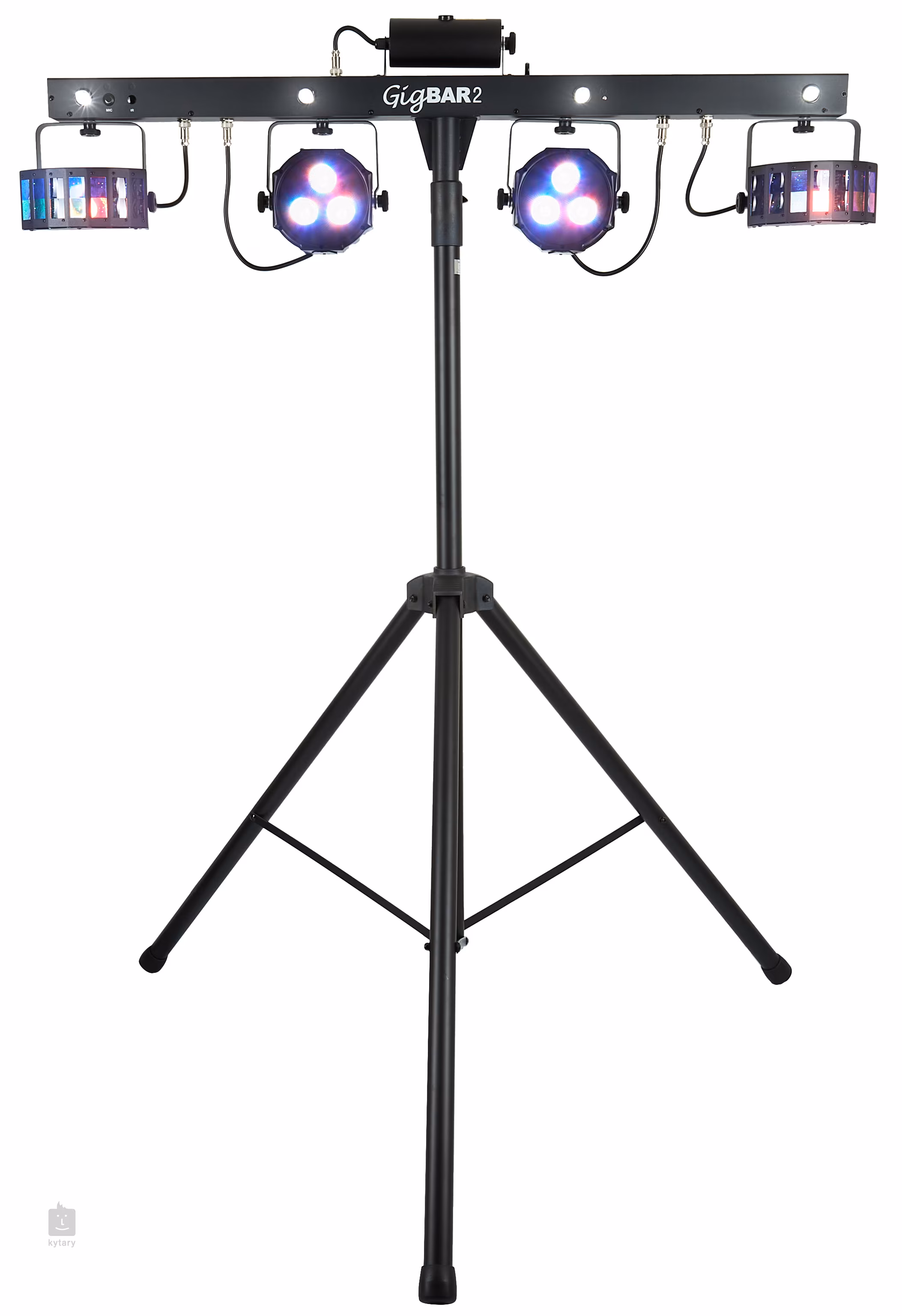 Das GigBar2-Lichtsystem von Chauvet DJ besteht aus einer Bullbar, auf der vier Strobe-LEDs, zwei Beam-LED-Effekte, zwei Wash-Reflektoren und ein Laser montiert sind. Zum Lieferumfang gehören außerdem ein stabiler Ständer, ein kabelloser Fußschalter, ein Infrarot-Fernbedienungs-Controller IRC-6 und eine praktische Tragetasche. Das System ist für den mobilen Einsatz geeignet und eignet sich hervorragend für die Beleuchtung von Partys, Firmenveranstaltungen oder Live-Auftritten. Das Gesamtgewicht des Geräts beträgt 11,6 kg.