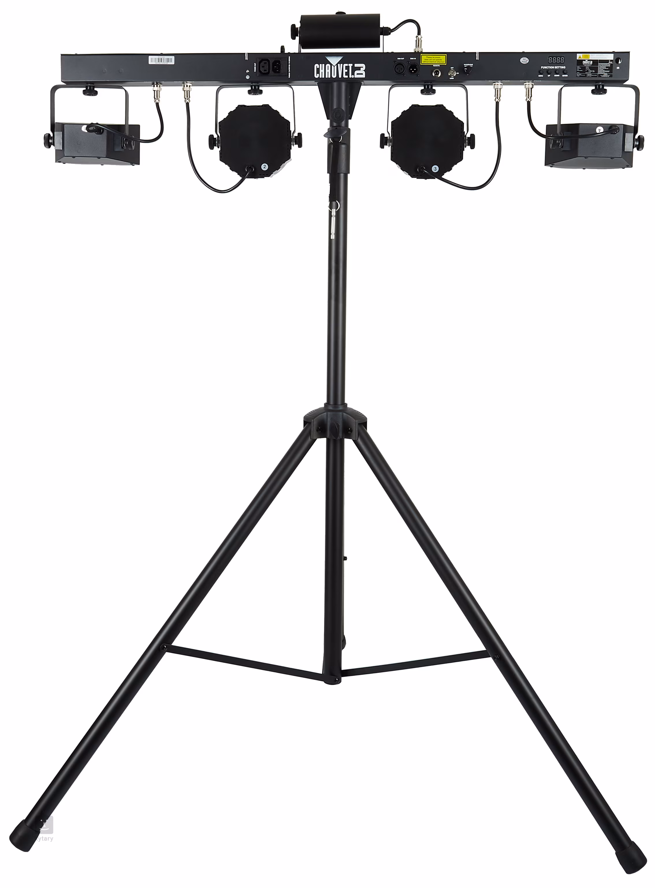 Das GigBar2-Lichtsystem von Chauvet DJ besteht aus einer Bullbar, auf der vier Strobe-LEDs, zwei Beam-LED-Effekte, zwei Wash-Reflektoren und ein Laser montiert sind. Zum Lieferumfang gehören außerdem ein stabiler Ständer, ein kabelloser Fußschalter, ein Infrarot-Fernbedienungs-Controller IRC-6 und eine praktische Tragetasche. Das System ist für den mobilen Einsatz geeignet und eignet sich hervorragend für die Beleuchtung von Partys, Firmenveranstaltungen oder Live-Auftritten. Das Gesamtgewicht des Geräts beträgt 11,6 kg.