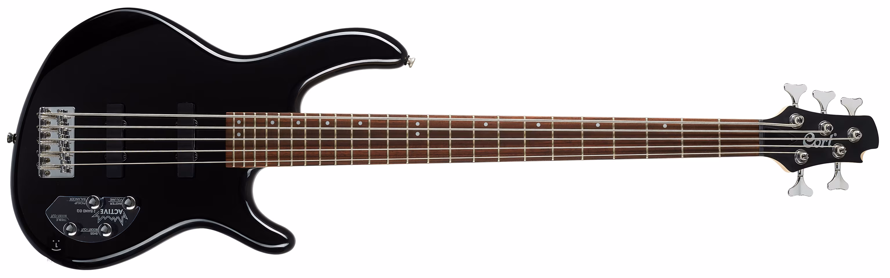 Der Action Bass Plus ist die Einsteiger-Elektrobass-Linie von Cort, die z. B. J/P-Tonabnehmer oder aktive Elektronik mit einem Zweiband-EQ für Bass- und Höhenanhebung/-unterdrückung zu einem sehr günstigen Preis bietet. Das macht das Instrument klanglich sehr vielseitig und für viele Musikstile geeignet. Der Korpus wurde aus Pappelholz gefertigt und mit einem Hals aus kanadischem Hartahorn verschraubt. Er ist mit einem Palisandergriffbrett mit vierundzwanzig Bünden ausgestattet. Das Instrument hat eine ergonomische Form und ein geringes Gewicht, so dass man es problemlos stundenlang spielen kann.