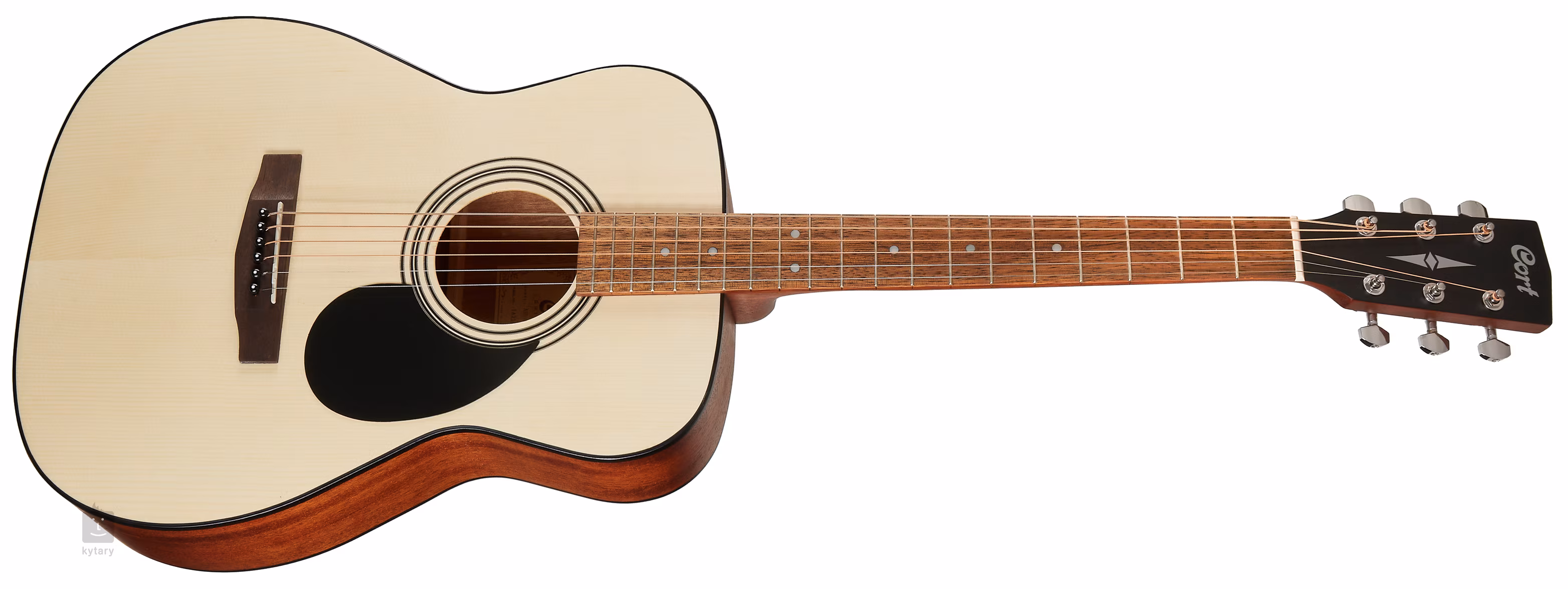 Die Einpassung der Saiten in die speziell geformte Merbau-Kopfplatte und die verchromten die-cast-Mechaniken garantieren der Gitarre gutes Sustain und Stimmstabilität. Die traditionellen Designelemente werden durch eine Rosette aus schwarzen Ringen und ein praktisches schwarzes Schlagbrett ergänzt, das den Lack der Gitarre vor Kratzern schützt.