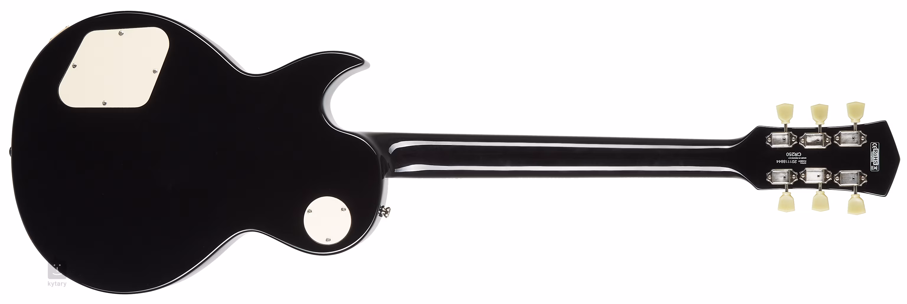 Die Cort CR250 ist eine Single-Cut-E-Gitarre, die dank ihres günstigen Preises und ihrer hochwertigen Verarbeitung sowohl junge Rockmusiker als auch erfahrene, technisch versierte Spieler anspricht. Der Mahagonikorpus der Gitarre ist mit einem effektvollen Deckenfurnier aus geflammtem Ahorn verziert. Der Mahagonihals ist mit einem Griffbrett aus Jatoba-Holz mit 22 Bünden versehen. Die Orientierung auf dem Griffbrett erleichtern Positionsmarkierungen aus Perlmuttimitat. Zwei PAF-Tonabnehmer, inspiriert von den Voiced Tone VTH-59 Humbuckern mit Alnico II-Magneten, verleihen der Gitarre einen vollen Rock-Sound, der bei Bedarf auch schön klar klingen kann. Zur Klangregelung dienen zwei Lautstärkeregler, zwei Klangregler und ein dreistufiger Tonabnehmerwahlschalter. Die Führung der Saiten über den Graphtech NuBone-Sattel und ihre Befestigung im Saitenhalter über den festen Tune-O-Matic-Steg garantieren eine optimale Übertragung der Saitenschwingungen auf den Korpus des Instruments. Das stilvolle Aussehen der Gitarre wird durch Stimmmechaniken im Vintage-Stil, Nickel-Hardware, eine Einfassung aus Imitationselfenbein und das Firmenlogo auf dem Kopf der Gitarre unterstrichen.