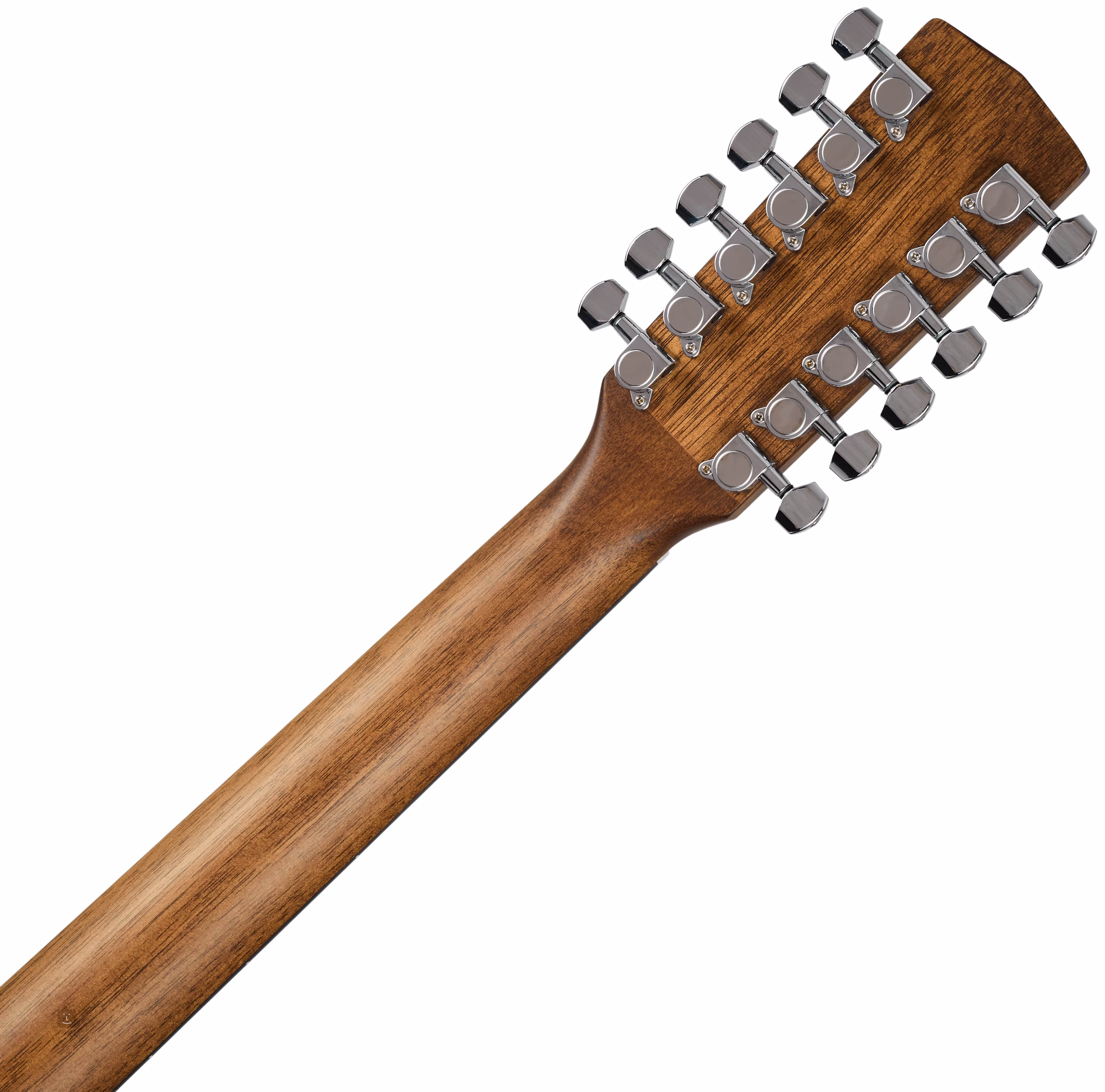 Die Vorderseite des 12-saitigen Earth 70-Modells besteht aus massiver Sitka-Fichte, während Boden und Zargen aus Mahagoni gefertigt sind. Diese bewährte Holzkombination verleiht dem Instrument einen ausgewogenen Klang mit dem nötigen Maß an tonaler Klarheit und Wärme. Der Mahagoni-Hals ist auf ein Ovangkol-Griffbrett mit zwanzig Bünden geleimt, und die Positionspunkte erleichtern die Navigation.