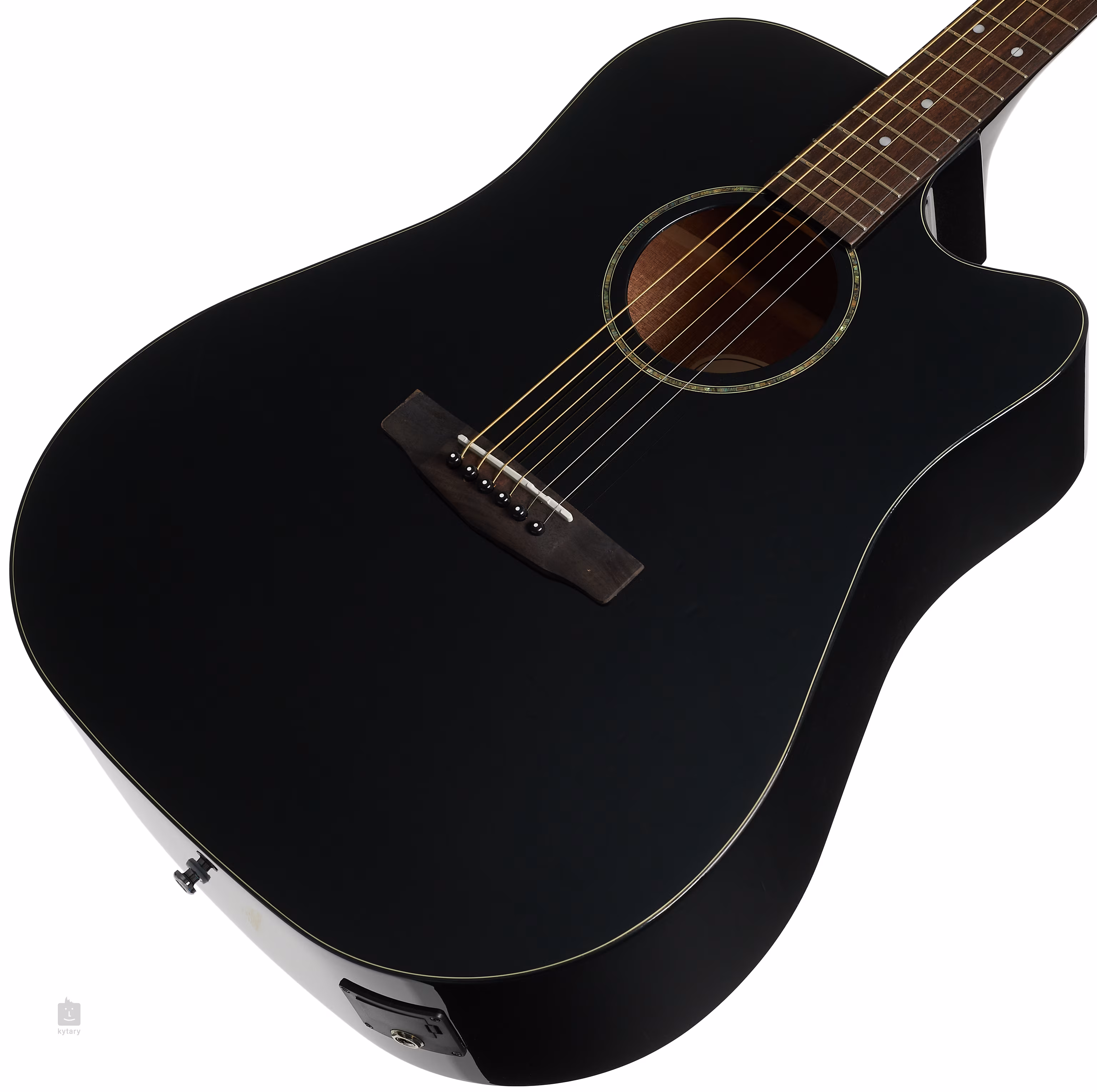 Für die Tonabnahme sorgt ein Cort CE304T Vorverstärker mit Dreiband-EQ und eingebautem Stimmgerät. Die Saiten sind in den hauseigenen Druckguss-Stimmmechaniken und dem Feigenholz-Griffbrett gelagert. Das stilvolle Finish wird durch traditionelle Elemente in Form einer Perlrosette (Abalone) und schwarzem Body Binding akzentuiert.