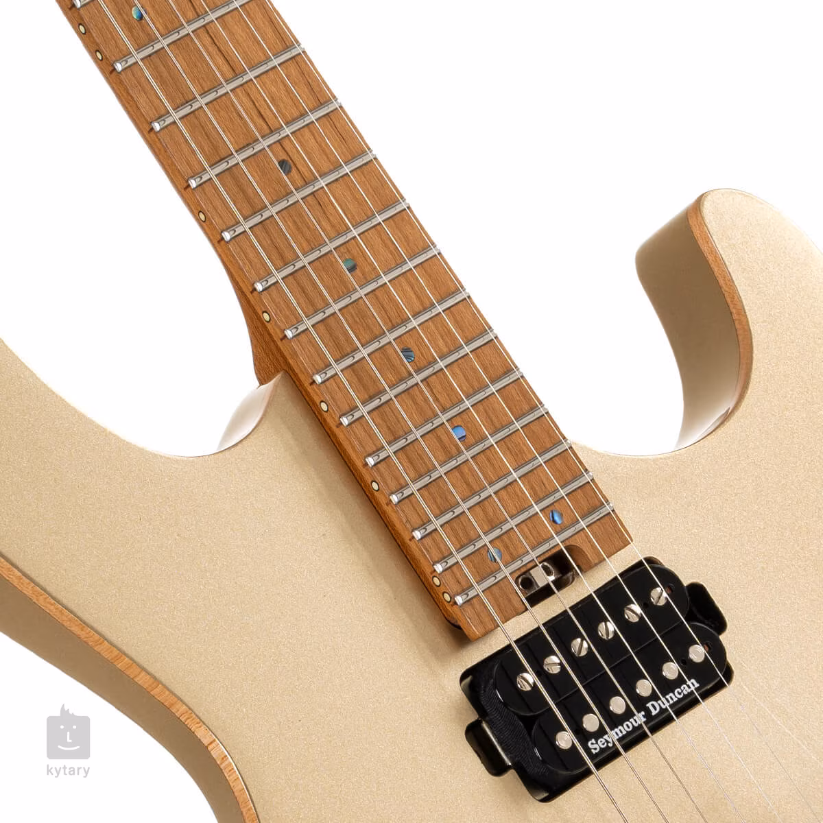 Zwei passive Seymour Duncan-Tonabnehmer verleihen der Gitarre den vollen dynamischen Sound von Humbuckern und den Charakter von Singlecoils (in den Positionen 2 und 4 des Pickup-Schalters). So kann die Gitarre in einem breiten Spektrum von Genres von Metal bis Jazz eingesetzt werden. Der Klangcharakter kann mit den Potentiometern für Lautstärke und Tonblende eingestellt werden. Die Saiten sind in den firmeneigenen Locking-Mechanismen verankert, die einen schnellen Saitenwechsel ermöglichen, und das firmeneigene Tremolo mit Stahlsätteln.