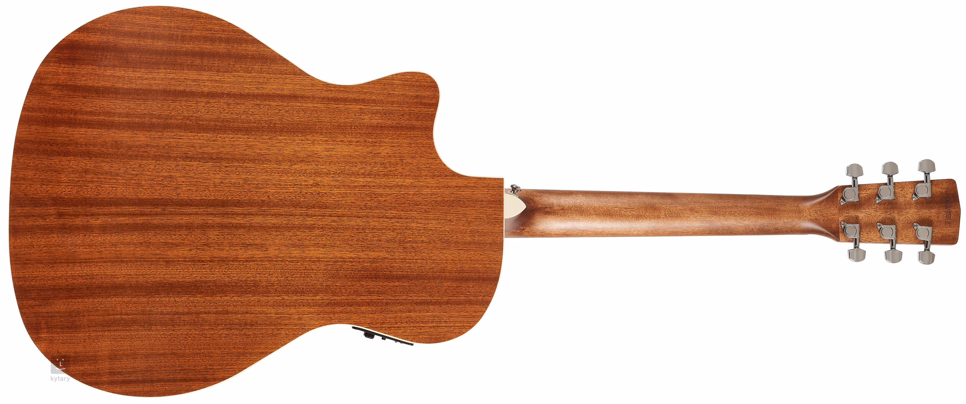 Die Tonabnahme erfolgt über einen Cort CE304T Vorverstärker mit Dreiband-EQ und eingebautem Stimmgerät. Die Saiten sind in der hauseigenen Druckgussmechanik und der Ovangkol-Kopfplatte gelagert. Das stilvolle Finish wird durch eine elfenbeinfarbene Rosette und Randeinfassung sowie ein Schildpatt-Schlagbrett akzentuiert.