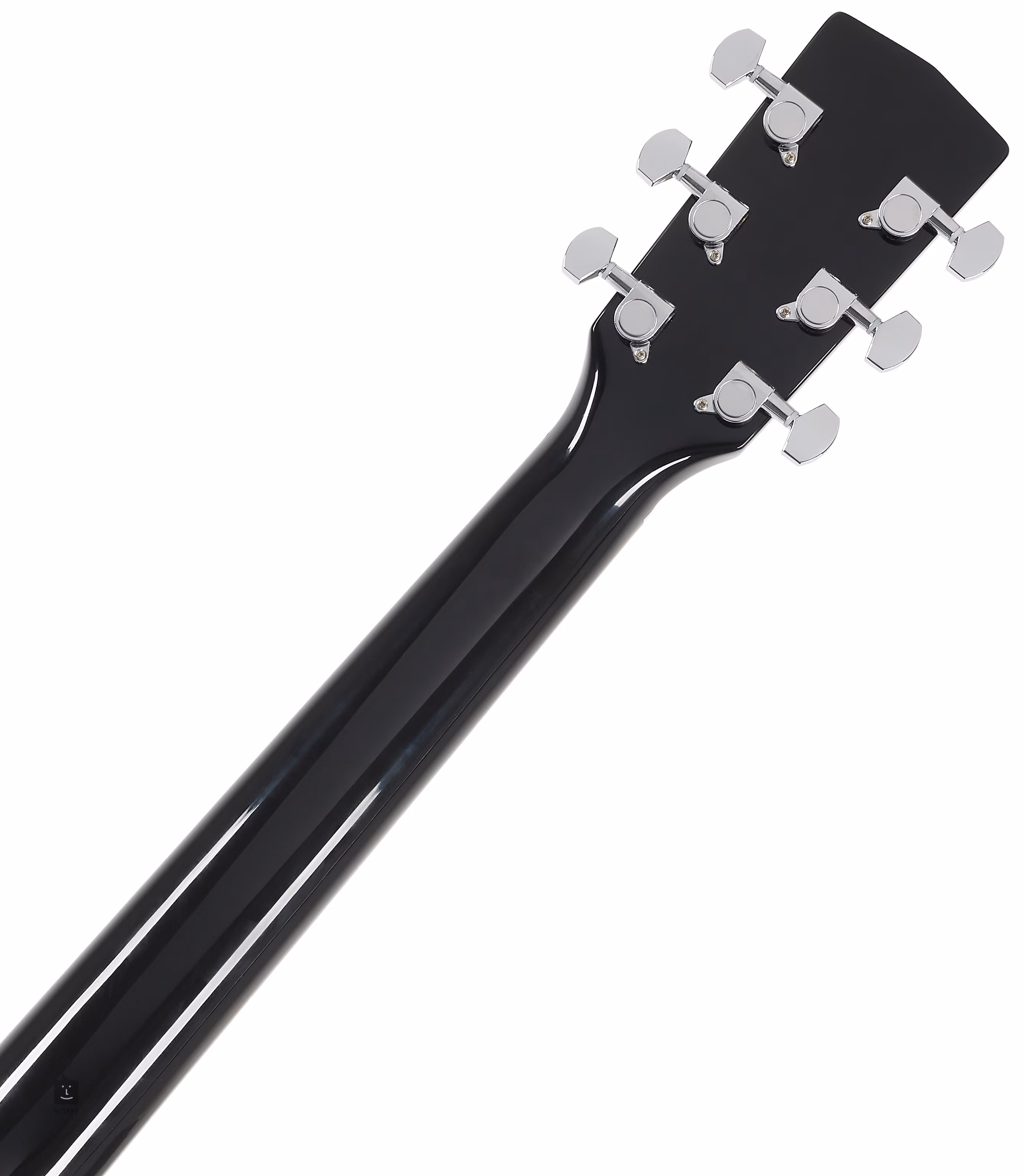 Der Mahagoni-Hals, der mit einer massiven Schwalbenschwanzverbindung am Korpus befestigt ist, ist mit einem 20-Bund-Feigengriffbrett verleimt. Das Griffbrett ist durch Positionspunkte ausgerichtet. Die Saiten sind in den hauseigenen Druckguss-Stimmmechaniken und dem Feigenholz-Griffbrett gelagert. Die stilvolle Verarbeitung wird durch traditionelle Elemente in Form einer Perlmuttrosette (Abalone) und schwarzem Body Binding akzentuiert.