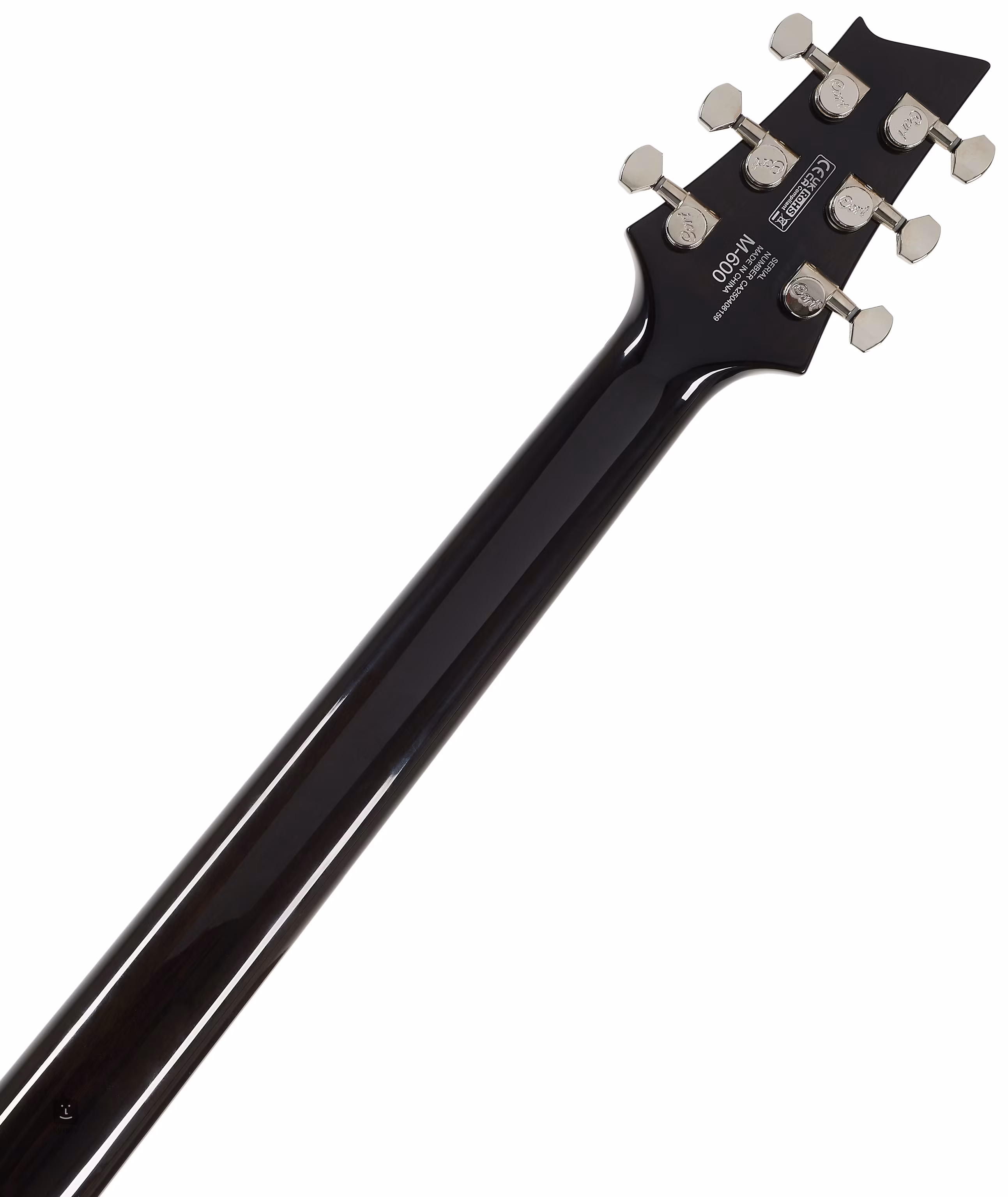 Der Mahagonikorpus der M600 TSB ist mit einer geflammten Ahorndecke furniert. Die Holzmaserung wird durch eine glänzende Lackierung und Tobacco Sunburst akzentuiert. Ein Palisandergriffbrett mit zweiundzwanzig Bünden ist auf einen Ahornhals mit komfortablem C-Profil geleimt. Die Orientierung auf dem Griffbrett wird durch weiße Perlmutt-Positionsblöcke erleichtert.