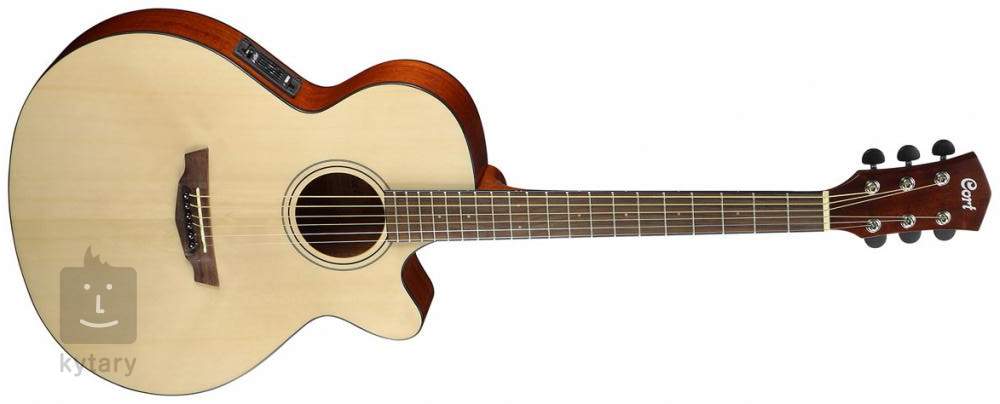 Der Korpus der Cort SFX1F NS besteht aus einer massiven Fichtendecke und einer Mahagoniboden- und Zargenlage. Diese bewährte Holzkombination verleiht dem Instrument einen ausgewogenen Klang mit dem nötigen Maß an tonaler Klarheit und Wärme. Die gewölbte Bodenplatte kompensiert den schmaleren Korpus, so dass es dem Klang des Instruments nicht an der nötigen Tiefe und Fülle fehlt.