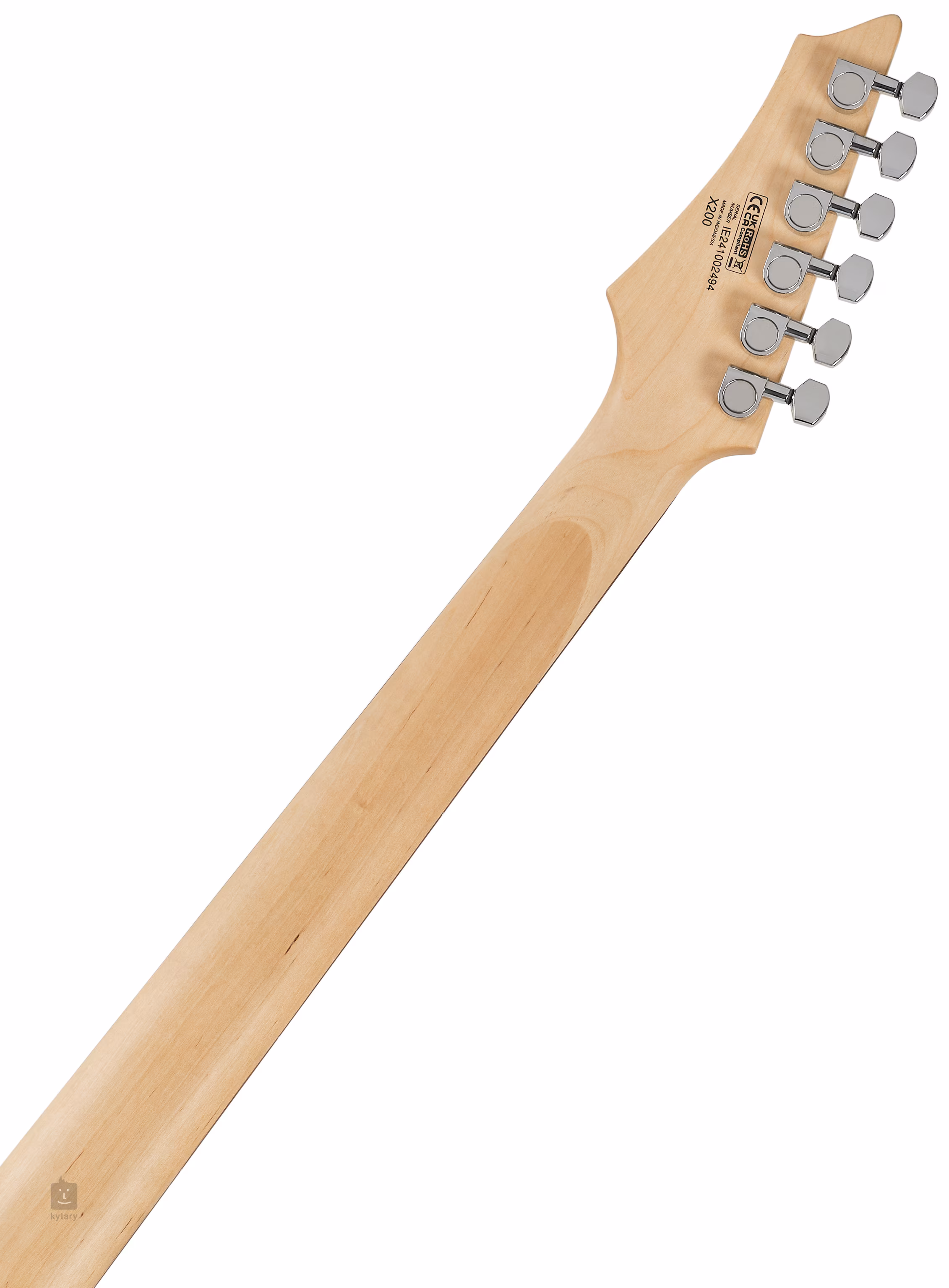 Der Korpus der X200 CBL E-Gitarre ist aus Pappelholz gefertigt. Ein Jatoba-Griffbrett mit vierundzwanzig Bünden ist auf einen verschraubten Ahornhals geklebt. Positionspunkte auf dem Griffbrett erleichtern die Orientierung.