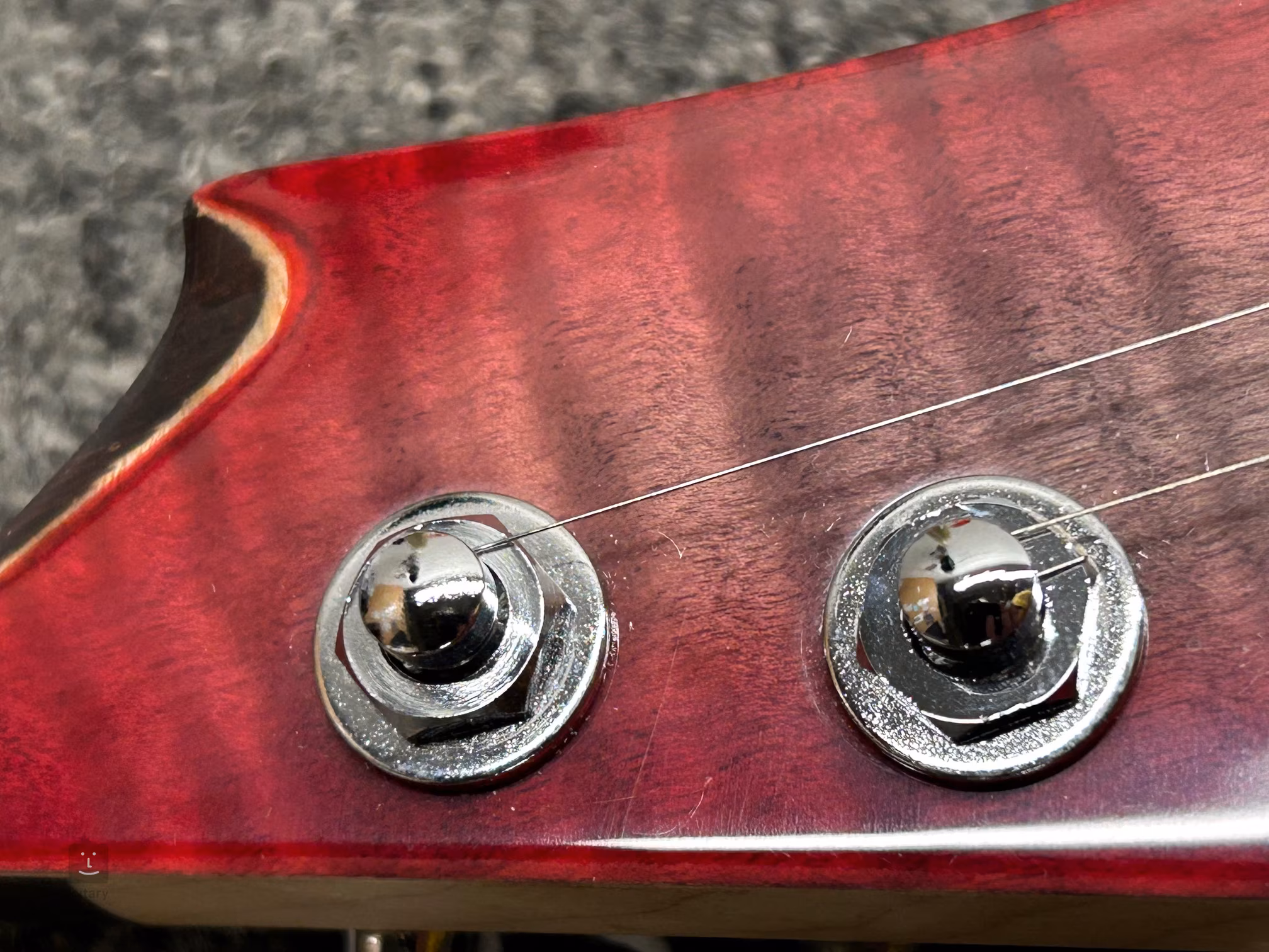 Der X700 Duality II LVB ist Corts nächster Schritt in Richtung höherwertiger Modelle mit vollwertigen Spezifikationen und sollte ernst genommen werden. Die Gitarre besticht bereits auf den ersten Blick durch ihr modernes, ausgefeiltes Design mit einem auffälligen geflammten Ahorn-Deckenfurnier auf einem Mahagoni-Korpus und einem beeindruckenden Lava Burst-Finish. Ein Ebenholz-Griffbrett mit vierundzwanzig Bünden aus rostfreiem Stahl ist auf einen verschraubten dreiteiligen Hals aus Ahorn und Mango geklebt. Die Orientierung auf der Oberfläche des Griffbretts wird durch Positionspunkte aus Perlmutt (Abalone) und Leuchtpunkte an der Seite erleichtert.