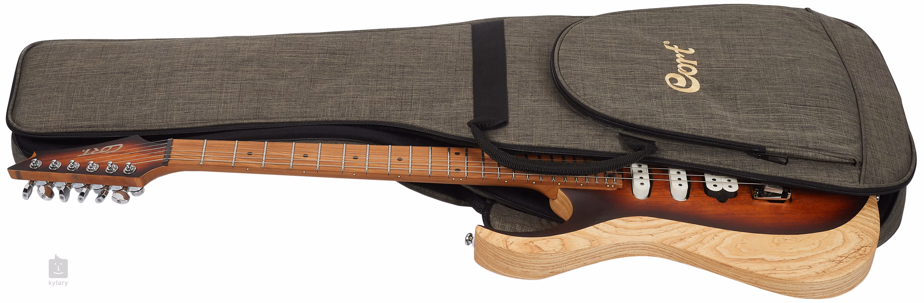 Die Saiten sind in den Locking-Mechaniken der Firma montiert und ein versenktes Cort CFA-III 2-Punkt-Tremolo mit Stahlsätteln. Die Gitarre wird in einem Gigbag geliefert.