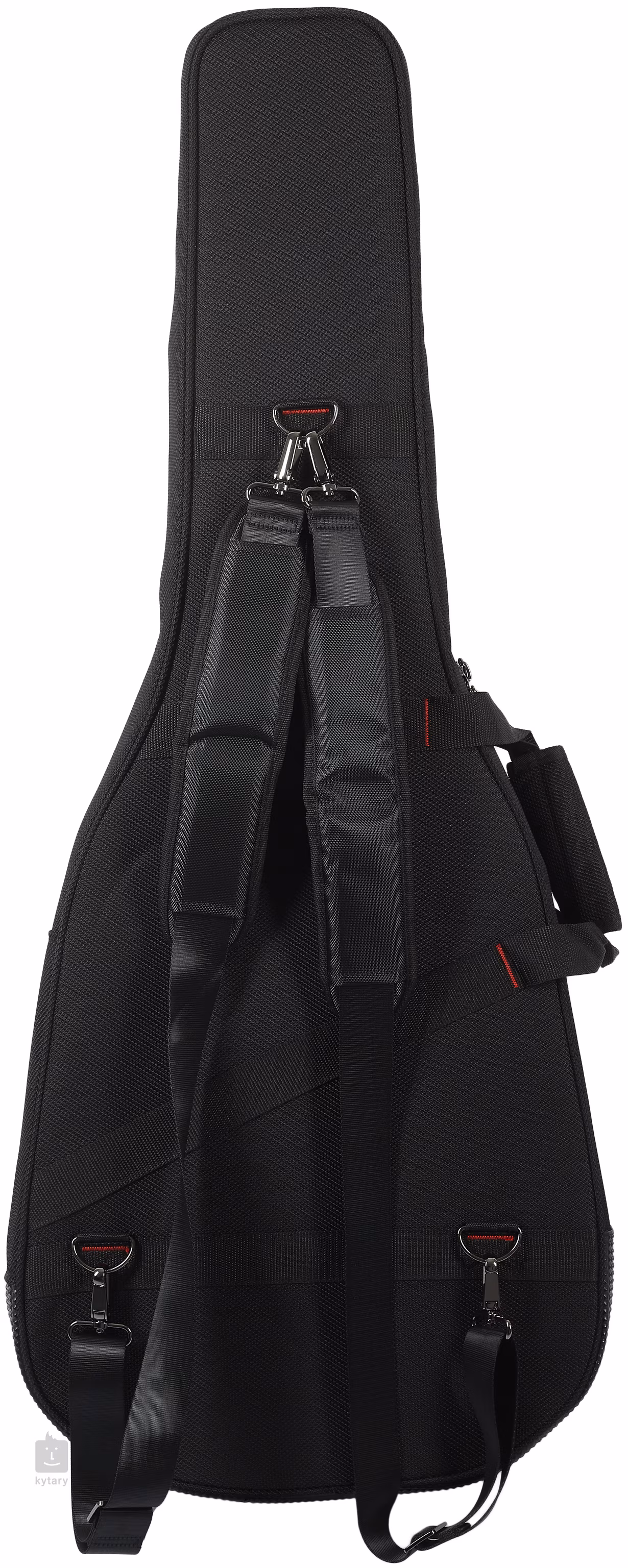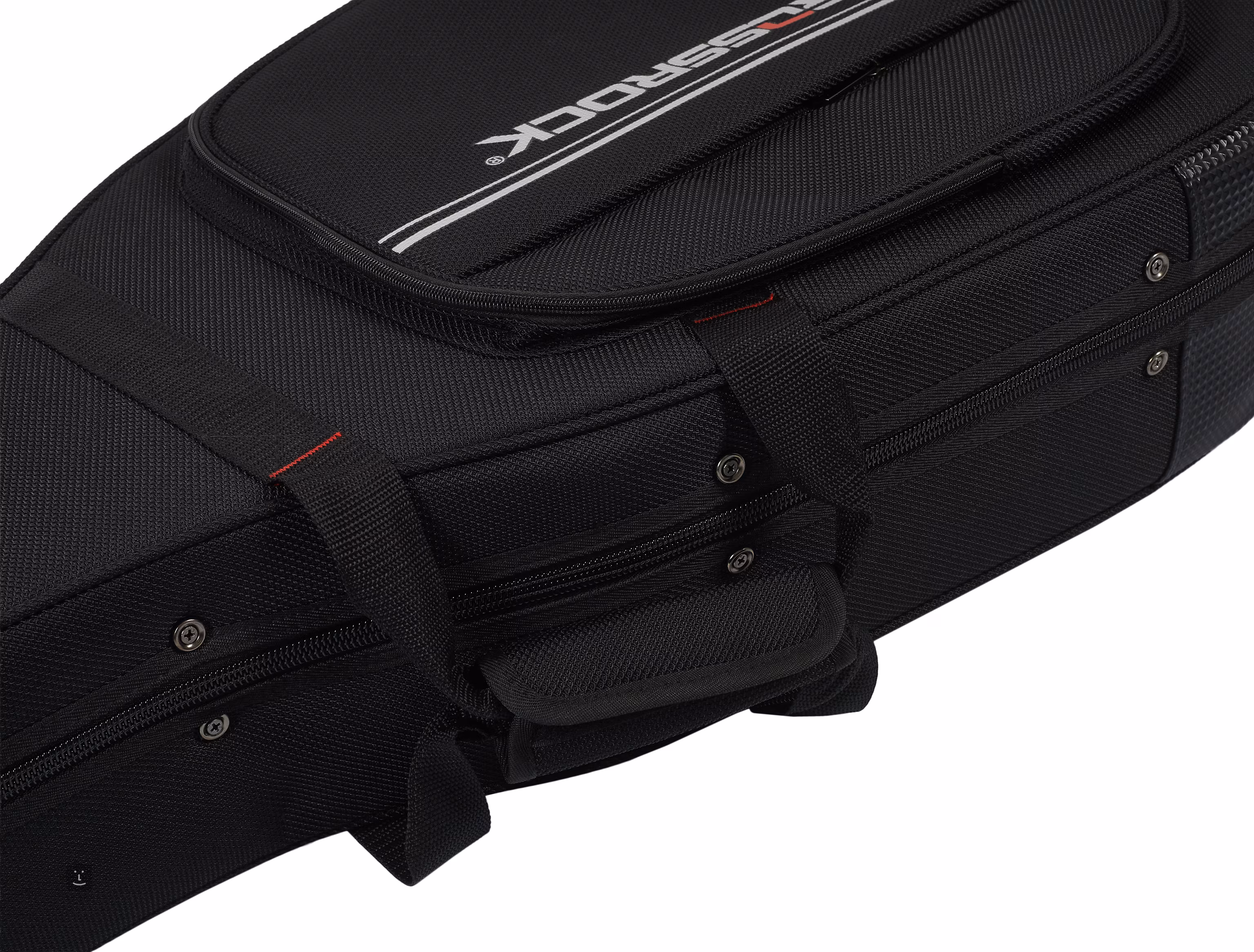 Die Tasche verfügt über eine große Vordertasche, in der Gitarrenpedale, Kabel oder Musikbücher Platz finden. Eine kleinere Tasche dient zur Aufbewahrung von kleinem Zubehör wie Plektren, Stimmgeräten oder Saiten. Auf der Rückseite des Koffers befinden sich einfache Rückengurte für bequemes Tragen. Außerdem gibt es einen praktischen Seitengriff.