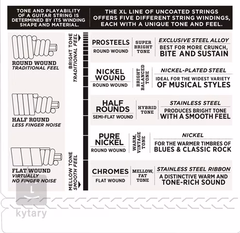 Die polierten Saiten für E-Bässe der Marke D’Addario aus der XL Chromes-Serie bieten eine feine, polierte Oberfläche und einen warmen, abgerundeten Klang. Sie eignen sich besonders für Jazzmusiker, die einen sanften, klaren Klang ohne unerwünschte Geräusche suchen, die beim Fingerspielen entstehen. Ihre Basis bildet ein Stahlkern mit hohem Kohlenstoffgehalt, der mit einer polierten Umwicklung überzogen ist, die zusätzlich nachpoliert wird, um maximale Oberflächenglätte zu erreichen. Kurz gesagt: das Beste, was Sie Ihrem Bass gönnen können.