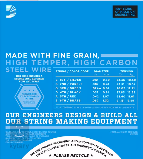 Stärken der einzelnen Saiten: .012/.016/.024w/.032/.042/.052
