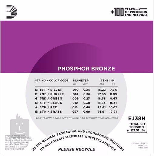 Wenn Sie Saiten für eine Akustikgitarre mit einem runden, warmen Klang suchen, ist die Serie D'Addario Phosphor Bronze die richtige Wahl für Sie. Phosphorbronze wird heutzutage häufig für die Herstellung von Saiten verwendet, aber 1974 war es D'Addario, das dieses Material zum ersten Mal vorstellte. Seitdem sind sie ein Synonym für einen warmen, frequenzausgewogenen Klang, der für alle möglichen Genres geeignet ist. Der sechseckige Stahlkern mit hohem Kohlenstoffgehalt verleiht ihnen eine lange Lebensdauer, eine exzellente Intonation und einen wunderschönen Klang.