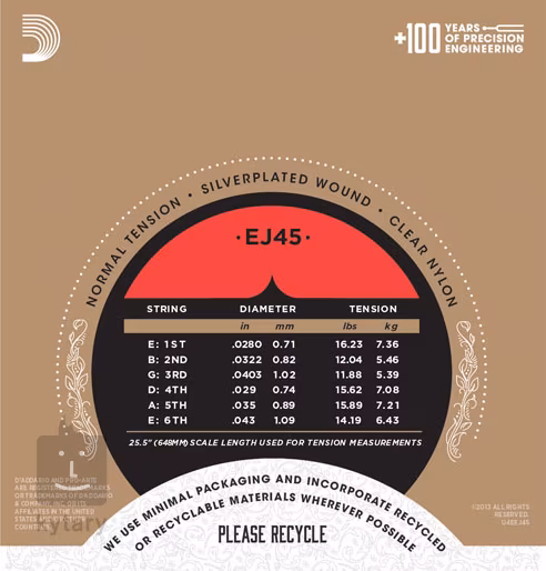 D'AddarioPro-Arté Nylonsaiten sind professionelle Saiten für klassische Gitarre, die für anspruchsvolle Spieler entwickelt wurden. Der Satz EJ45 enthält klare Nylonsaiten, die weiche und abgerundete Höhen erzeugen. Die Basssaiten sind mit versilbertem Kupfer ummantelt, was ihnen einen außergewöhnlich warmen Klang verleiht. Die Medium Tension macht diesen Satz zu einem glücklichen Mittelweg zwischen Weichheit und sattem, druckvollem Ton. Deshalb gehört er auch zu unseren absoluten Bestsellern. Wenn Sie auf der Suche nach erstklassigem Klang und präziser Intonation sind, ist die Pro-Arté-Serie die richtige Wahl für Sie!