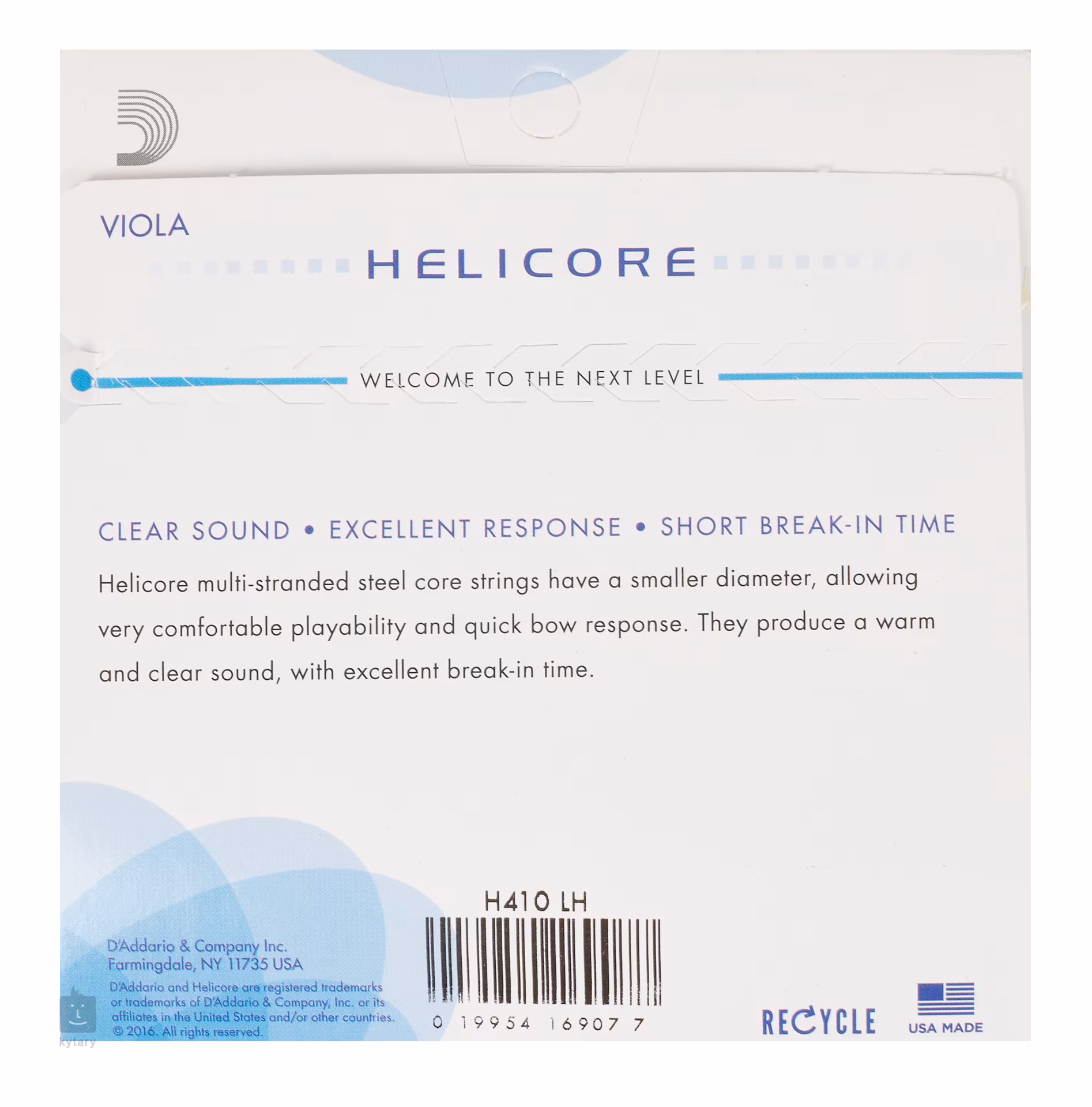 Die professionellen Bratschensaiten der Helicore-Serie bestehen aus mehreren Stahllitzen und erzeugen einen hellen und warmen Klang. Ihr kleinerer Durchmesser sorgt für eine gute Bogenansprache, und sie eignen sich für eine Vielzahl von Spieltechniken. Sie sind bei Musikern wegen ihrer stabilen Stimmung und langen Lebensdauer beliebt.