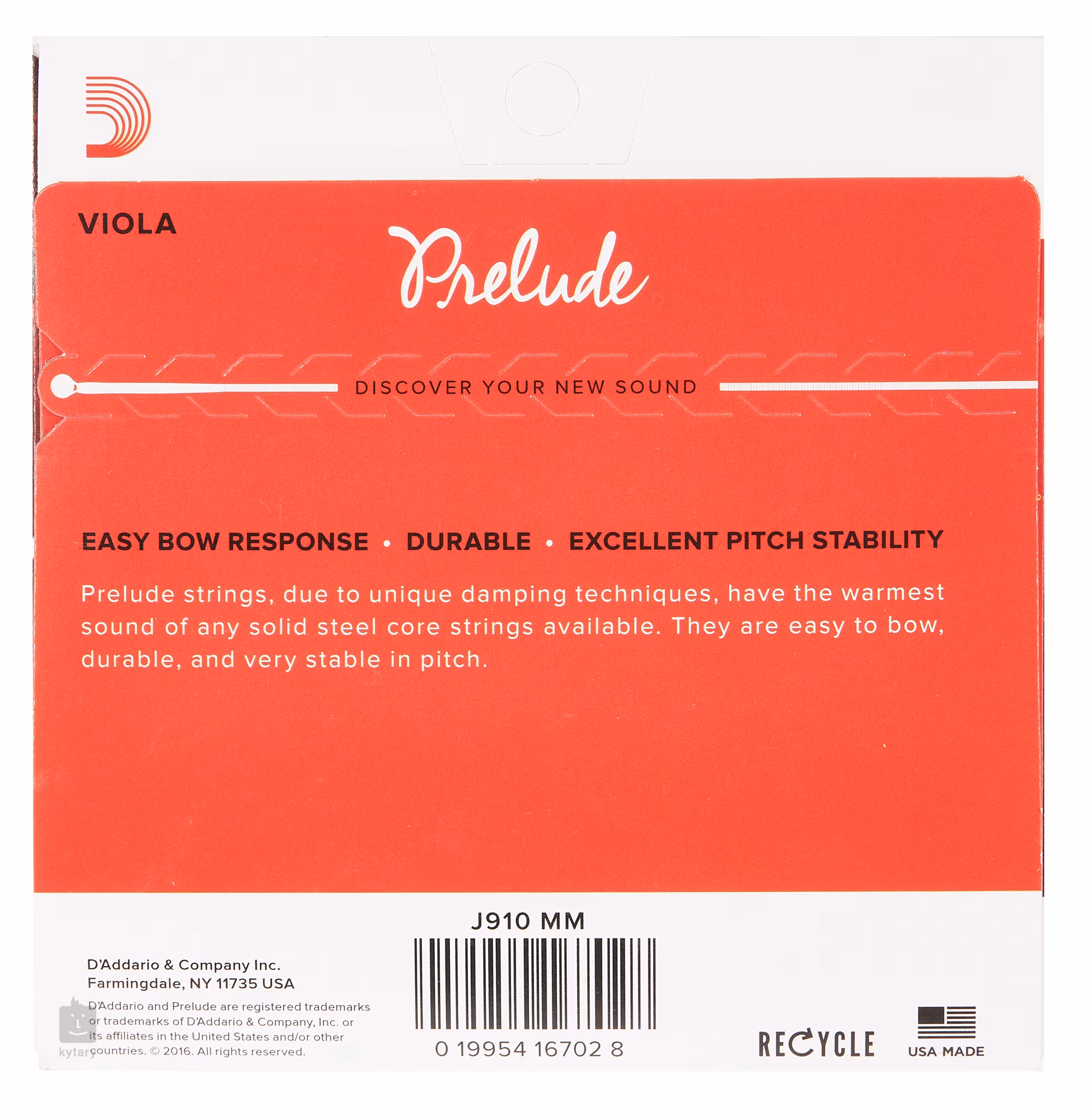 Die Bratschensaiten der Prelude-Serie haben einen Stahlkern und sind sehr widerstandsfähig gegenüber Temperatur- und Feuchtigkeitsschwankungen. Sie sprechen hervorragend auf das Bogenspiel an und erzeugen einen für diese Preisklasse außergewöhnlich warmen Ton. Dieser Saitensatz ist ideal für Anfänger und Musikschulen.