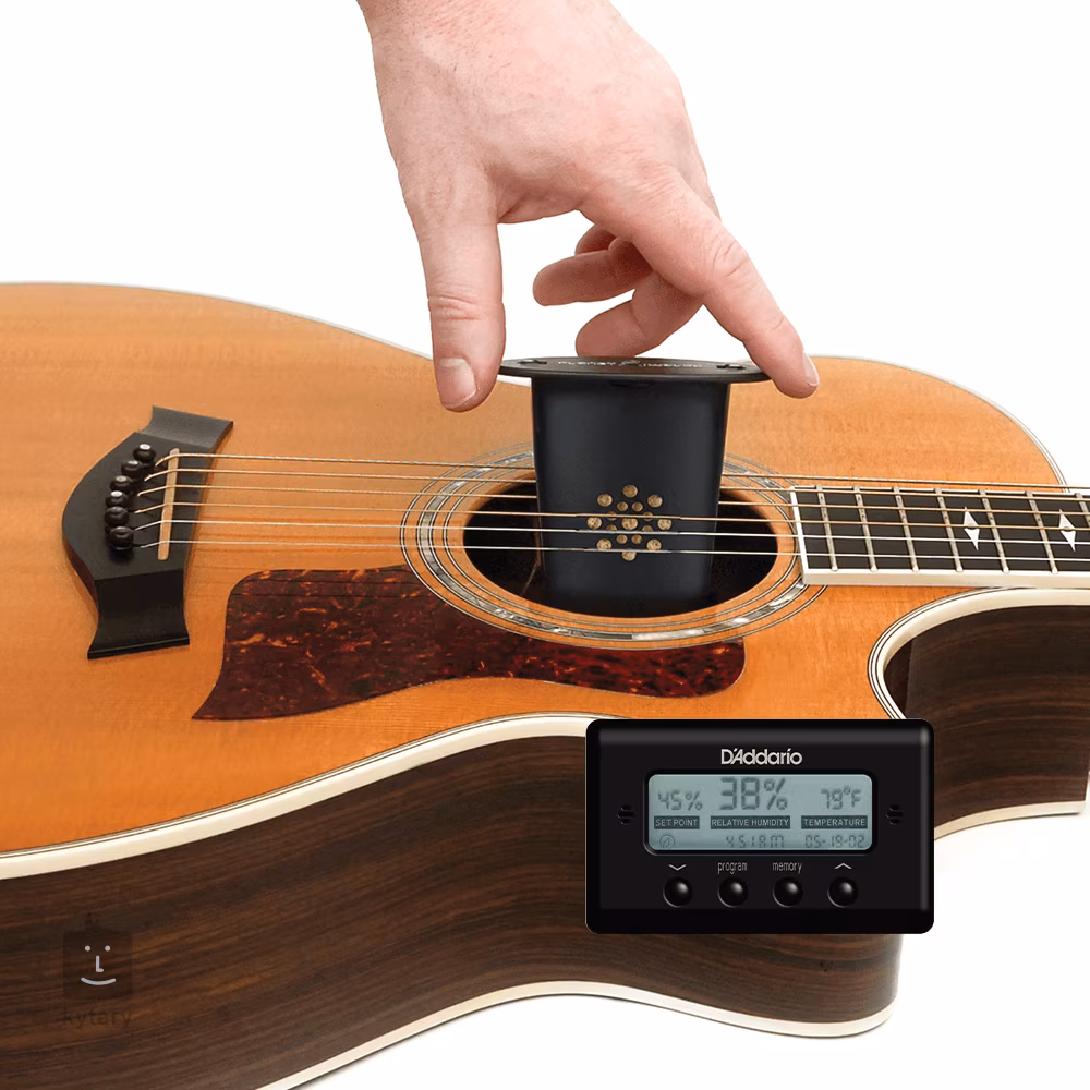 Dieses Set enthält den D'Addario Acoustic Guitar Soundhole Humidifier und den D'Addario Humidity & Temperature Sensor, ein elektronisches Hygrometer/Thermometer. Dies ermöglicht es Ihnen, einfach und klar zu halten Ihr Instrument in idealen Bedingungen, so dass es in perfektem Zustand zu bleiben.