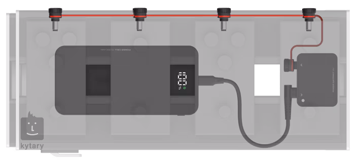Das XPND Pedal Power Battery Kit ist eine Komplettlösung für die Stromversorgung deines Pedalboards, egal ob du auf der Bühne, im Proberaum oder draußen auf der Straße spielst. Das Kit enthält eine 10.000-mAh-Powerbank, die Ihr Pedalboard für 10 Stunden oder mehr am Laufen hält. Alternativ können Sie auch den mitgelieferten USB-C-Netzadapter für die Stromversorgung verwenden. Der patentierte Gateway-Hub dient als Verbindung zwischen dem Netzteil oder der Powerbank und den Effekten. Seine Aufgabe ist es, unerwünschte Geräusche herauszufiltern und eine leise und stabile 9-Volt-Stromversorgung zu erzeugen. Das Kit enthält außerdem eine flexible Verkettung mit beweglichen Anschlüssen, die eine individuelle Platzierung jedes Anschlusses genau dort ermöglicht, wo er benötigt wird. Verwenden Sie das mitgelieferte Klettband, um das Gerät auf dem Pedalboard zu befestigen.