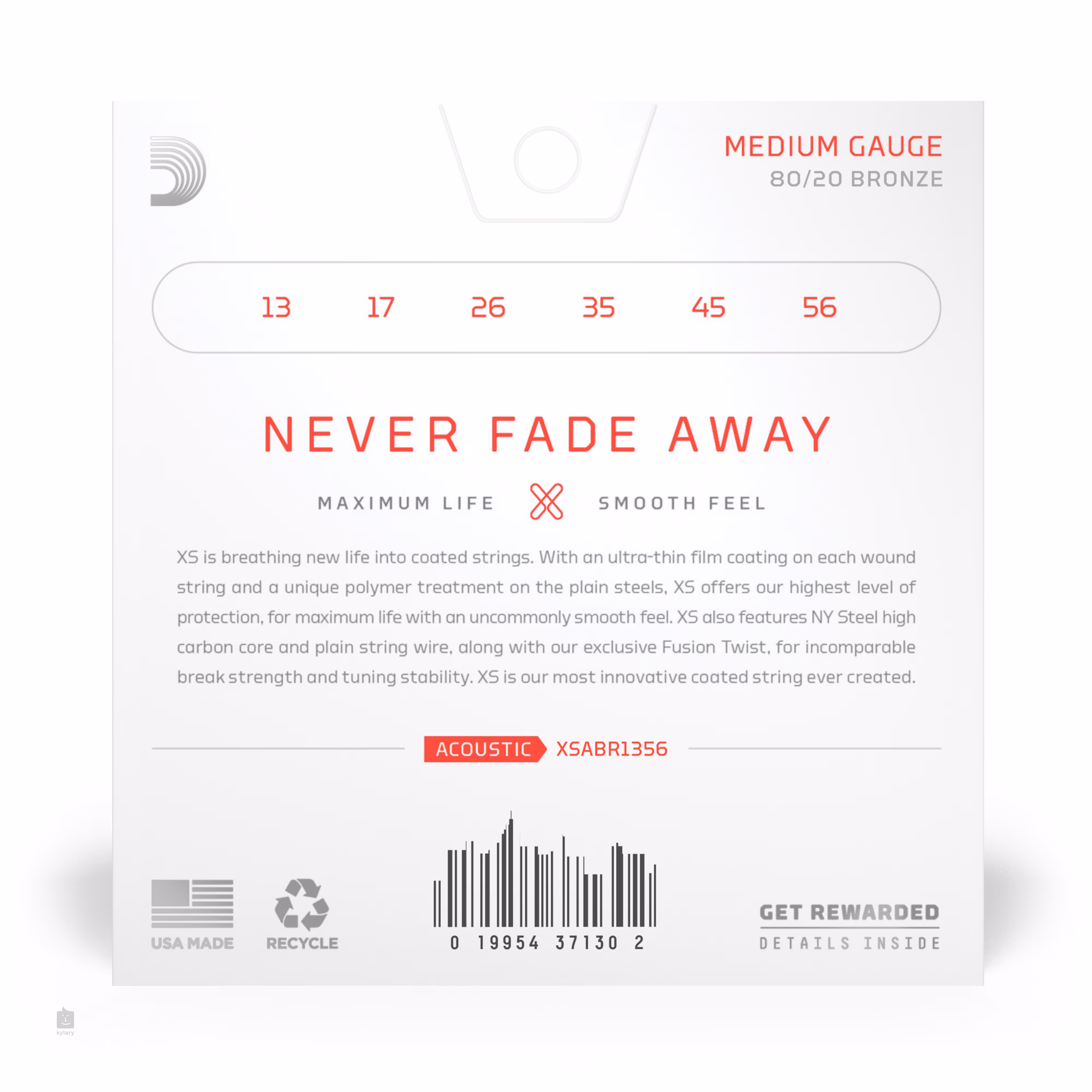 Die Spitzenreihe XS vonD'Addario stellt einen technologischen Durchbruch im Bereich der ummantelten Saiten dar und gehört zu den besten Produkten, die Sie im Katalog dieses weltbekannten Unternehmens finden können. Diese Saiten vereinen das Beste aus der XT-Reihe, setzen aber noch einmal neue Maßstäbe. Die unglaublich dünne Beschichtung verleiht ihnen eine unübertroffene Lebensdauer und eine angenehm glatte Oberfläche, ohne die hervorragenden Klangeigenschaften zu beeinträchtigen, für die D'Addario-Saiten bekannt sind. Dank des sechseckigen Stahlkerns mit hohem Kohlenstoffanteil und der Bronze-Legierungswicklung (80/20) bieten sie einen klaren und durchdringenden Klang, der von hohen Frequenzen dominiert wird. Gleichzeitig zeichnen sie sich durch hervorragende Stimmstabilität und hohe Widerstandsfähigkeit aus. Es handelt sich einfach um Spitzen-Saiten, die Ihnen sehr lange Freude bereiten werden. In dieser Packung finden Sie sehr harte Saiten mit einer Härte von 13.