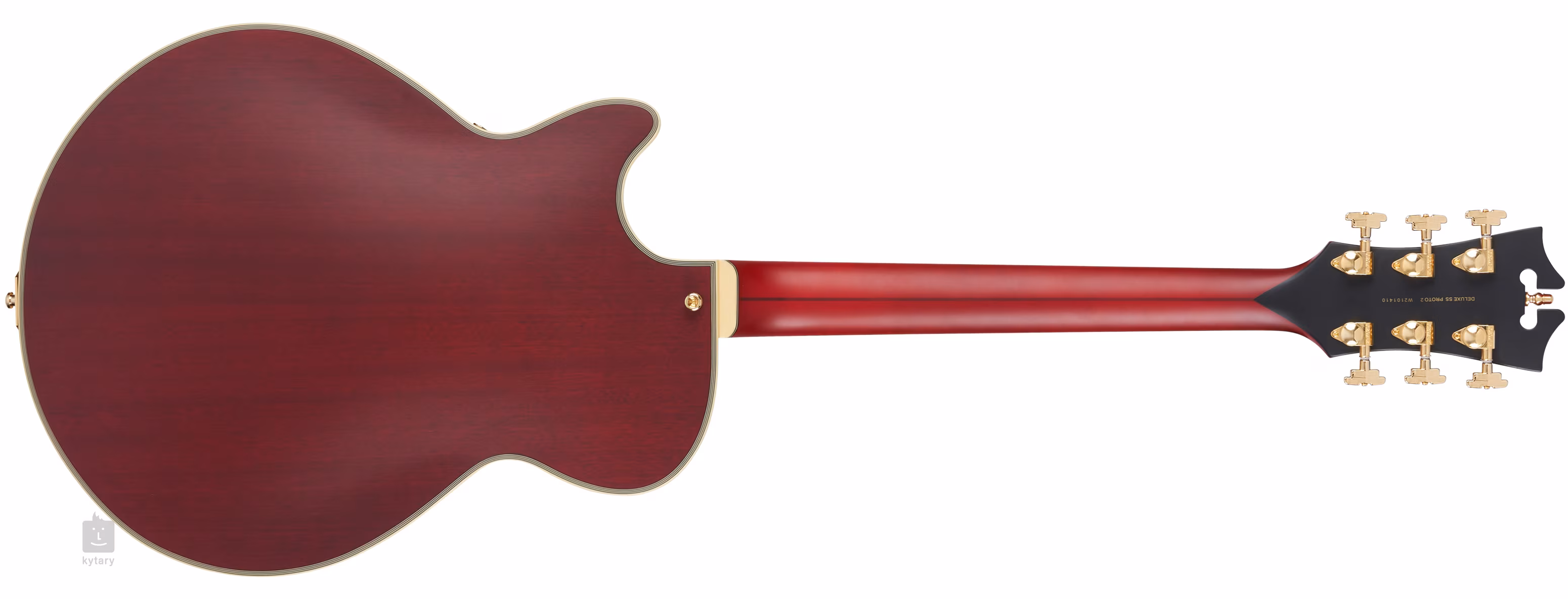 Der Korpus der Gitarre wird durch die für das Unternehmen charakteristische Art-Déco-Kopfplatte mit Perlmuttintarsie und Firmenlogo ausgeglichen. Stabile Stimmung und gutes Sustain werden durch die Befestigung der Saiten durch den Knochen-Nullbund in Grover 509 Super Rotomatic Locking Mechaniken und durch die TOM-Kopfplatte in den Art Deco Style Stringern garantiert. Das luxuriöse Finish der Gitarre wird durch eine satinierte, halbtransparente Lackierung, mehrlagiges Korpus-, Griffbrett- und Kopfplatten-Binding, Scalini-Pickguard aus fünf Lagen, Potentiometerkappen aus Ebenholz und goldene Hardware akzentuiert.