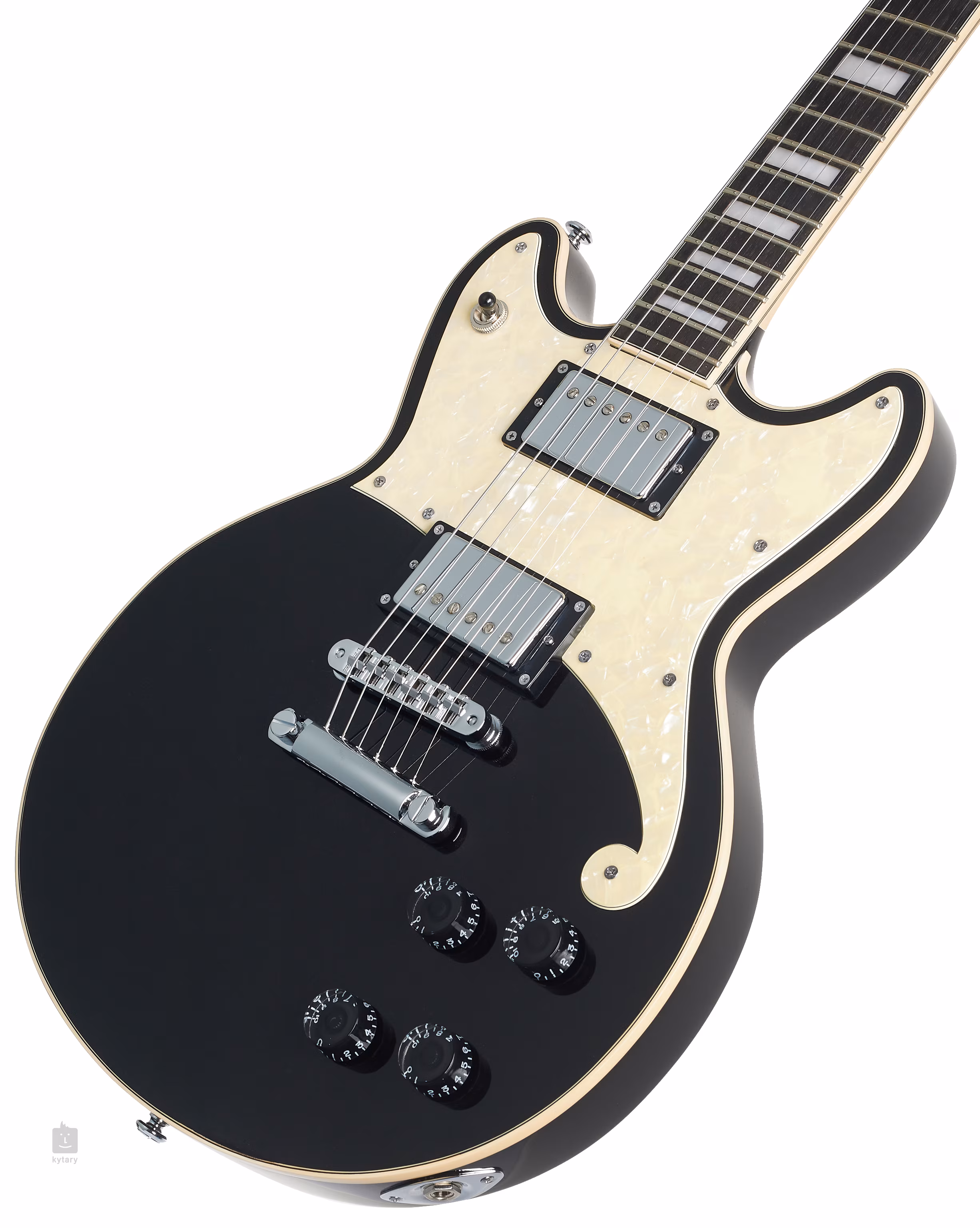 Die Premier Brighton Black Flake ist eine E-Gitarre der amerikanischen Marke D'Angelico im stilvollen Double-Cut-Design. Der schmalere Lindenholzkorpus mit tieferem Belly-Cut bietet dank seiner ergonomischen Form und seines geringeren Gewichts maximalen Spielkomfort. Am Ahornhals ist ein Griffbrett aus Ovangkol mit 22 Bünden der Größe Medium aufgeklebt. Positionsmarkierungen aus Perlmuttimitat erleichtern die Orientierung auf dem Griffbrett.