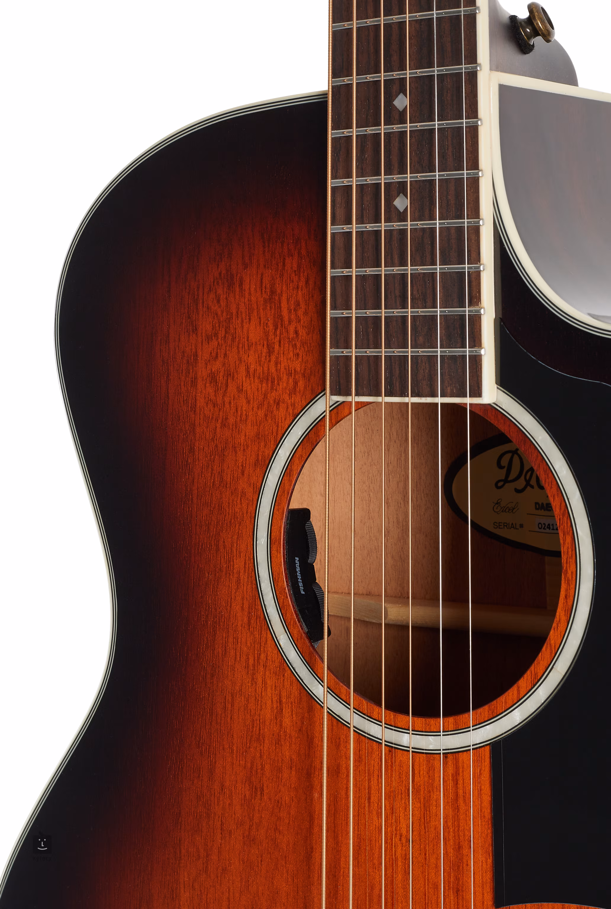 Der Korpus der Gitarre ist aus massivem Mahagoni gefertigt. Die guten akustischen Eigenschaften der Gitarre werden durch die reduzierte X-Verzahnung (Scalloped X) unterstützt. Ein Palisander-Griffbrett mit 20 Medium-Jumbo-Bünden ist auf den Mahagoni-Hals mit komfortablem Slim "C"-Profil und satiniertem Finish geleimt. Die Orientierung auf dem Griffbrett wird durch Perlmutt-Positionsmarkierungen in Form kleiner Diamanten erleichtert, während der untere Korpusausschnitt auch in höheren Griffbrettpositionen einen bequemen Sitz ermöglicht.