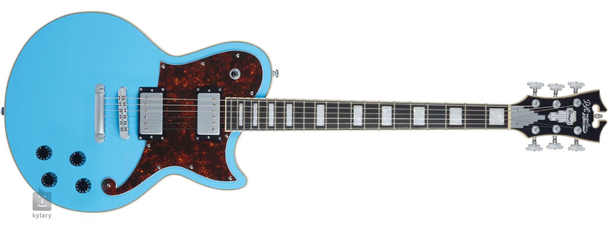Der Korpus der Gitarre wird durch eine typische Art-Deco-Kopfplatte ausgeglichen, die mit einem Firmenlogo aus Perlmutt verziert ist. Die Saiten sind durch Rotomatic-Stairstep-Mechaniken und einen soliden Tune-O-Matic-Saitenhalter und -Saitenhalter verankert. Der stilvolle Look wird durch das mehrschichtige helle Binding an Korpus, Griffbrett und Kopfplatte sowie das fünflagige Scalini-Schlagbrett unterstrichen.
