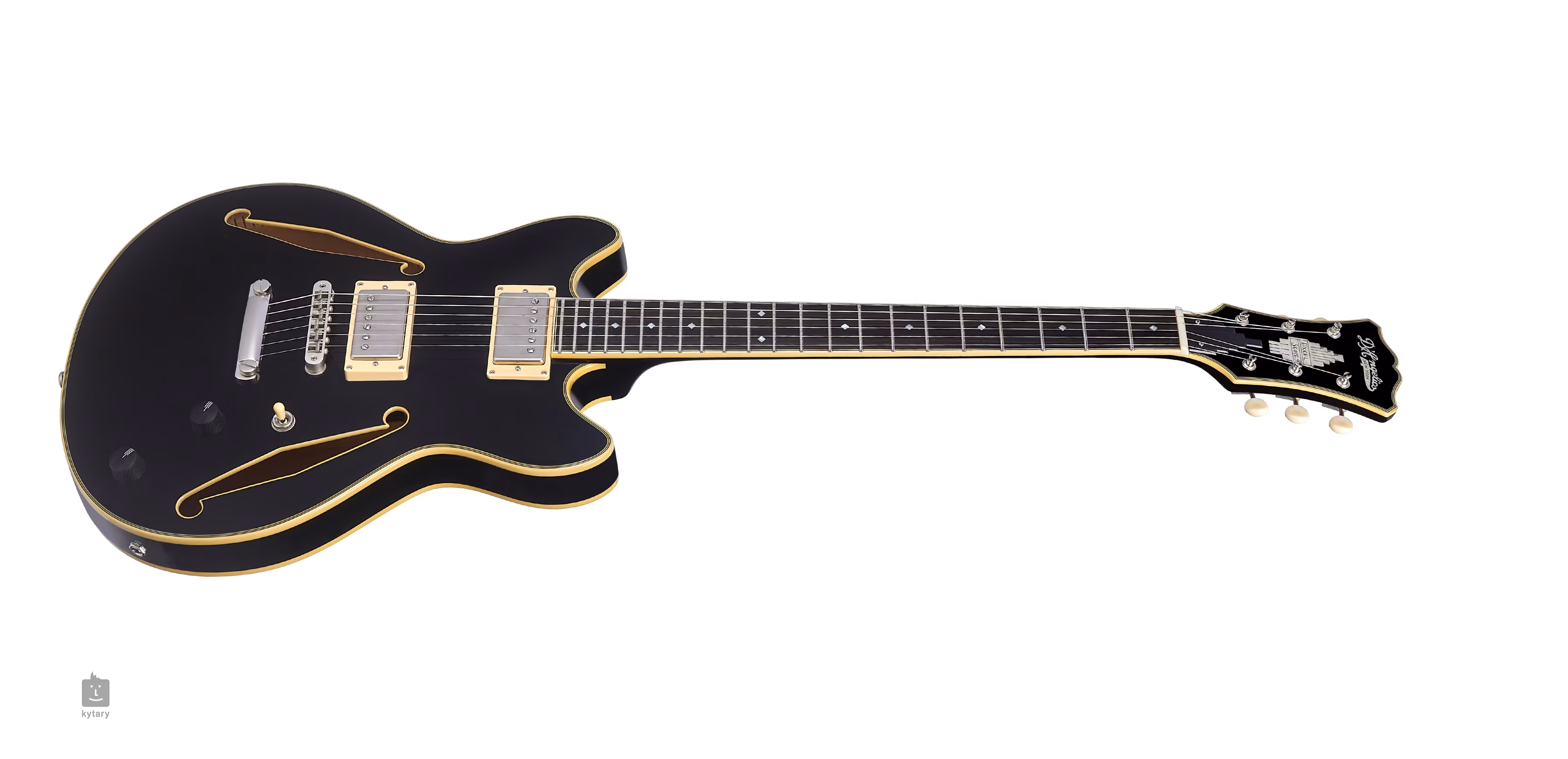 Zwei Supro Bolt Buckers im PAF-Stil mit Alnico 2 5-Magneten bieten eine breite Palette an warmen und kristallklaren Sounds. Der Charakter des Tons kann mit dem Lautstärkepotentiometer, der Tonblende und dem dreistufigen Pickup-Schalter gestaltet werden. Für eine stabile Stimmung und ein gutes Sustain sorgen die Saiten, die durch den Knochen-Nullbund im 15:1-Getriebe der Grover Vintage Deluxe und durch die TOM-Brücke im Halsstab geführt werden. Das stilvolle Finish wird durch die Excel Series-Perleinlage und das Firmenlogo (Perlmutt) auf der Kopfplatte, dem Korpus, dem Griffbrett und dem Kopfplatten-Binding sowie durch die von den 1930er Jahren inspirierten F-Cutouts akzentuiert.