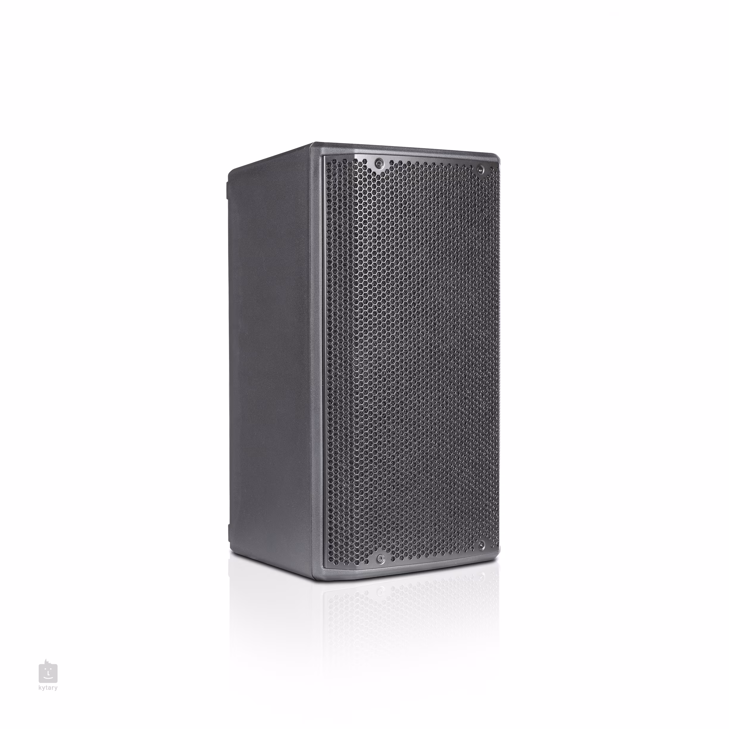 Im Inneren der robusten Konstruktion befinden sich 10"-Tieftöner und 1"-Hochtöner, die zusammen mit dem Class-D-Verstärker eine maximale Ausgangsleistung von bis zu 1200 W bieten. Die Rückseite bietet ein übersichtliches Bedienfeld, zwei kombinierte XLR/TRS-Eingänge und einen Schalter für acht DSP-Presets. Ein Paar stabile Griffe sorgen für einen bequemen Transport zwischen den Produktionen. Dank seiner abgeschrägten Form können Sie den Lautsprecher auch als Abhörmonitor verwenden.
