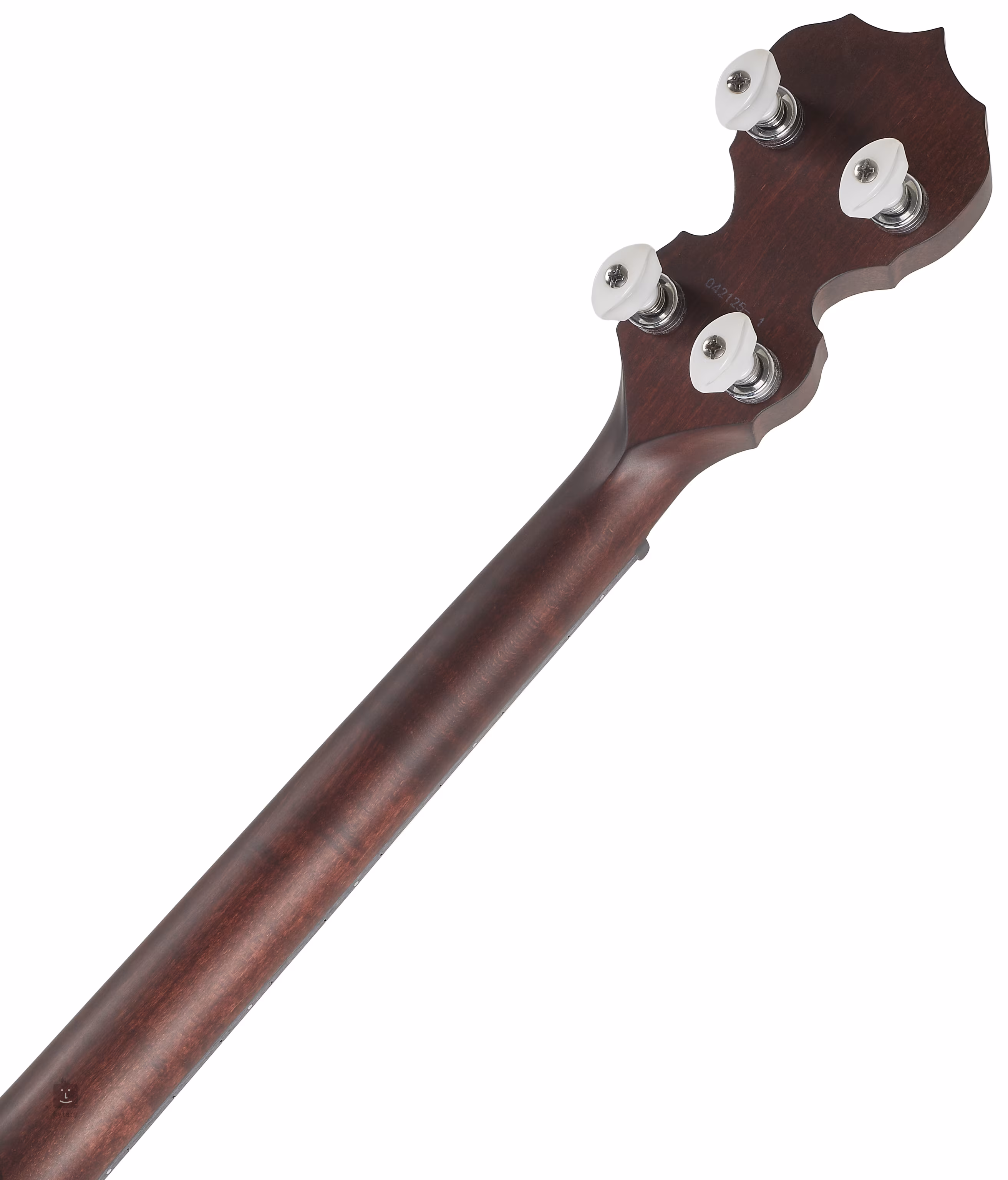 Artisan-Banjos unterscheiden sich von den "blonden" Banjos der Goodtime-Serie durch ihren dunkel gebeizten Ahornhals. Das Artisan Goodtime Two 17-Fret viersaitige Tenorbanjo gehört zu den sogenannten Resonatoren, d.h. es hat eine gewölbte Ahorndecke mit schwarzer Zierleiste auf der Rückseite. Dadurch hat es einen klaren Ton mit deutlich besserer Klangprojektion als Open-Back-Banjos.