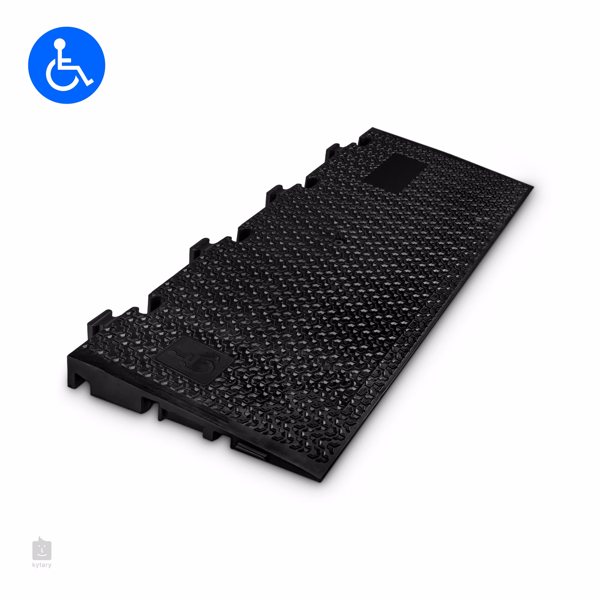 Mit einer Tragfähigkeit von bis zu 5 Tonnen ist sie die ideale Wahl für Musikveranstaltungen, Outdoor-Events, Messen oder Einkaufszentren. Die Brücken dieser Serie sind extrem niedrig und so konstruiert, dass sie die zusätzliche Last tragen und den härtesten Bedingungen im Innen- und Außenbereich standhalten. Sie bestehen aus einer Kombination aus schwarzem und gelbem Polyurethan, das gegen den Kontakt mit Ölen, Säuren und Benzin sowie gegen den kurzzeitigen Kontakt mit Lösungsmitteln resistent ist. Der gelbe Brückendeckel sorgt für gute Sichtbarkeit, Haltbarkeit und einen festen Verschluss. Die rutschfeste Oberfläche sorgt für erhöhte Sicherheit.
