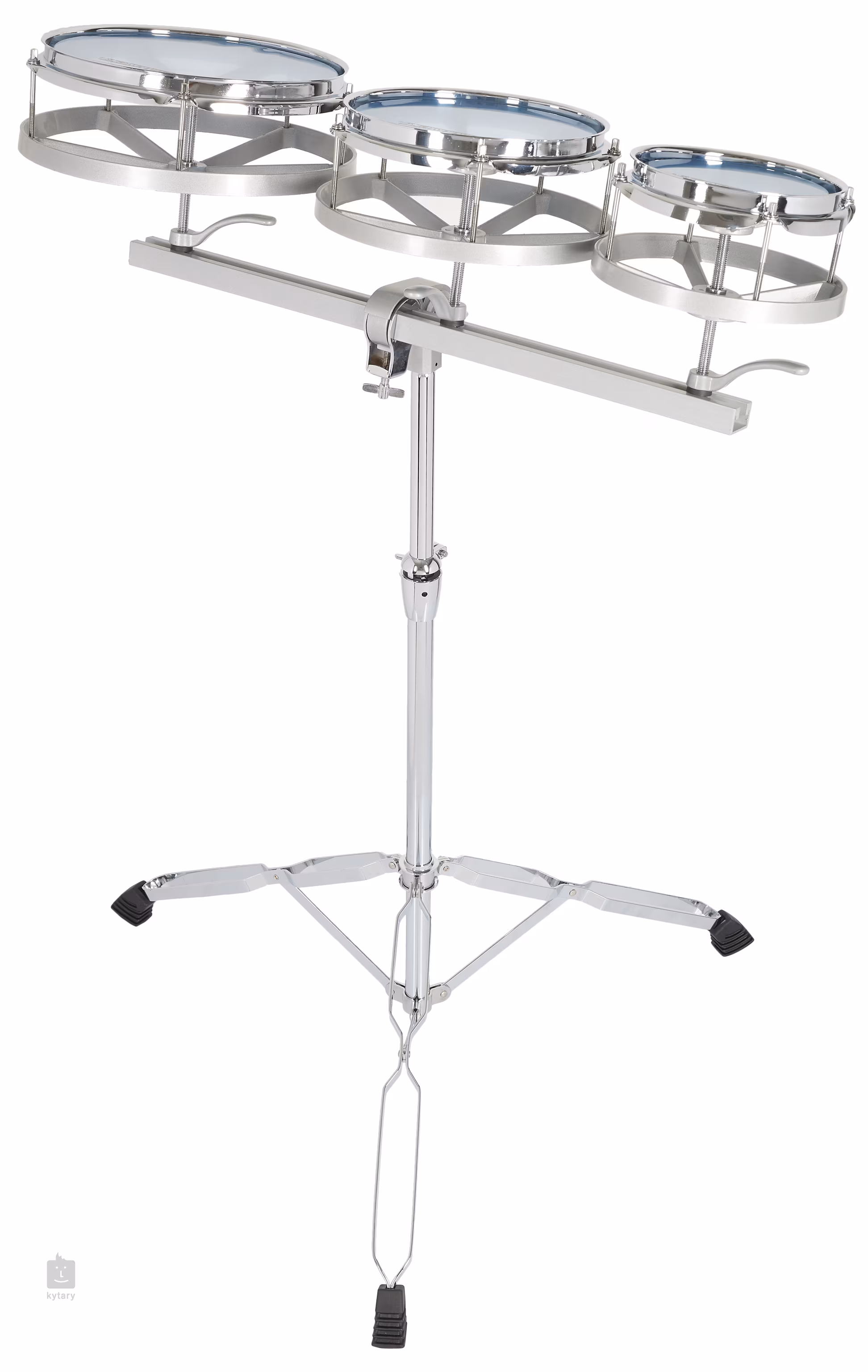 Satz Roto-Toms 6", 8", 10". Einstellbare Tonhöhe durch Drehen der Toms. Verchromte Metallteile. Hochwertiger Ständer mit doppelter Fixierung.