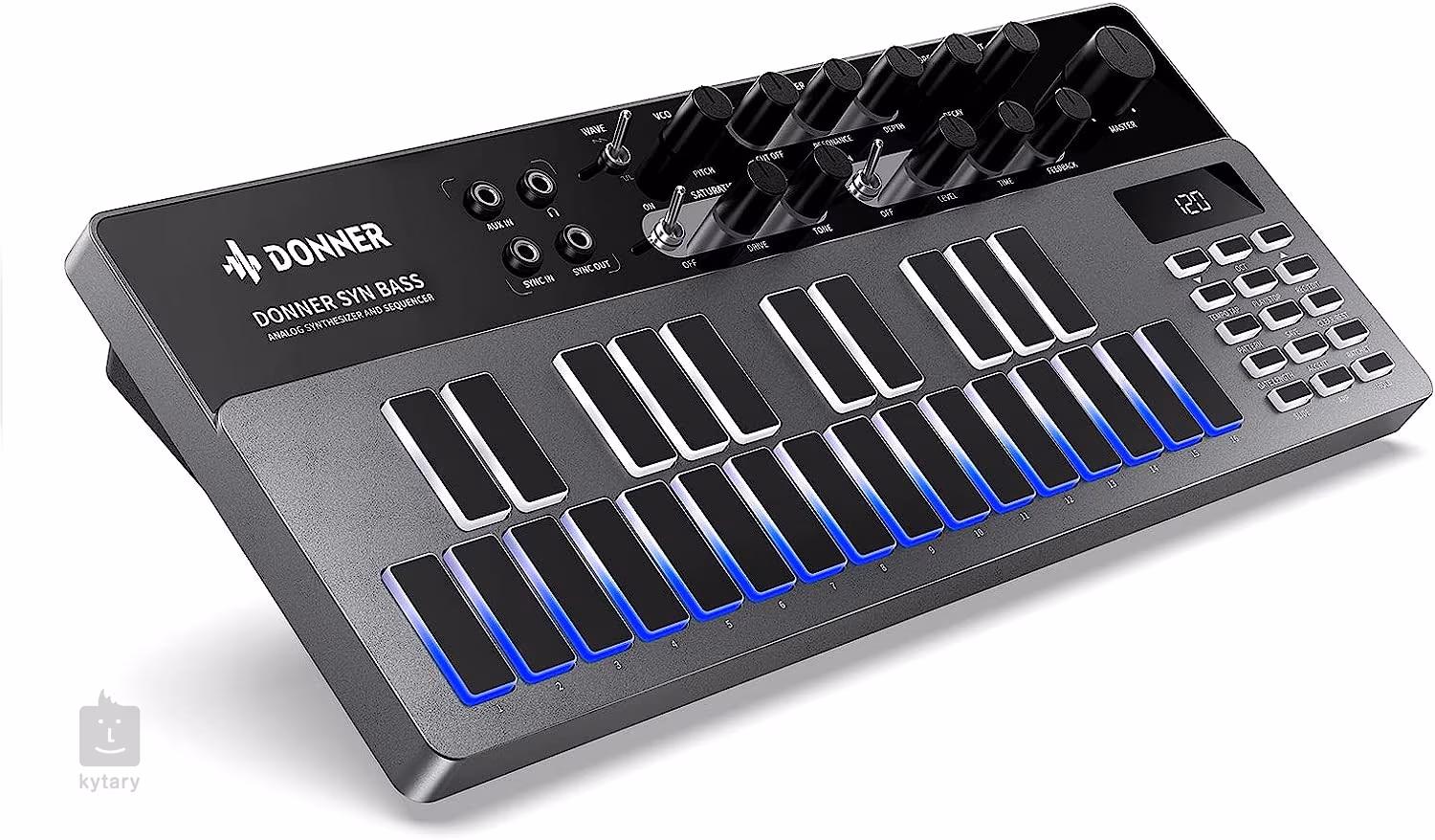 Der Donner B1 ist ein kompakter analoger Bass-Synthesizer, der klassischen Sound mit modernen Bedienelementen und intuitivem Workflow kombiniert. Er bietet 128 Werks- und User-Presets, mit denen Sie schnell musikalische Ideen speichern oder eigene Sequenzen erstellen können. Der integrierte Step-Sequenzer macht das Programmieren von Patterns zum Kinderspiel, egal ob Sie Anfänger oder erfahrener Komponist elektronischer Musik sind. Im Song-Modus können Sie Patterns verketten, um komplexere musikalische Phrasen zu erstellen.