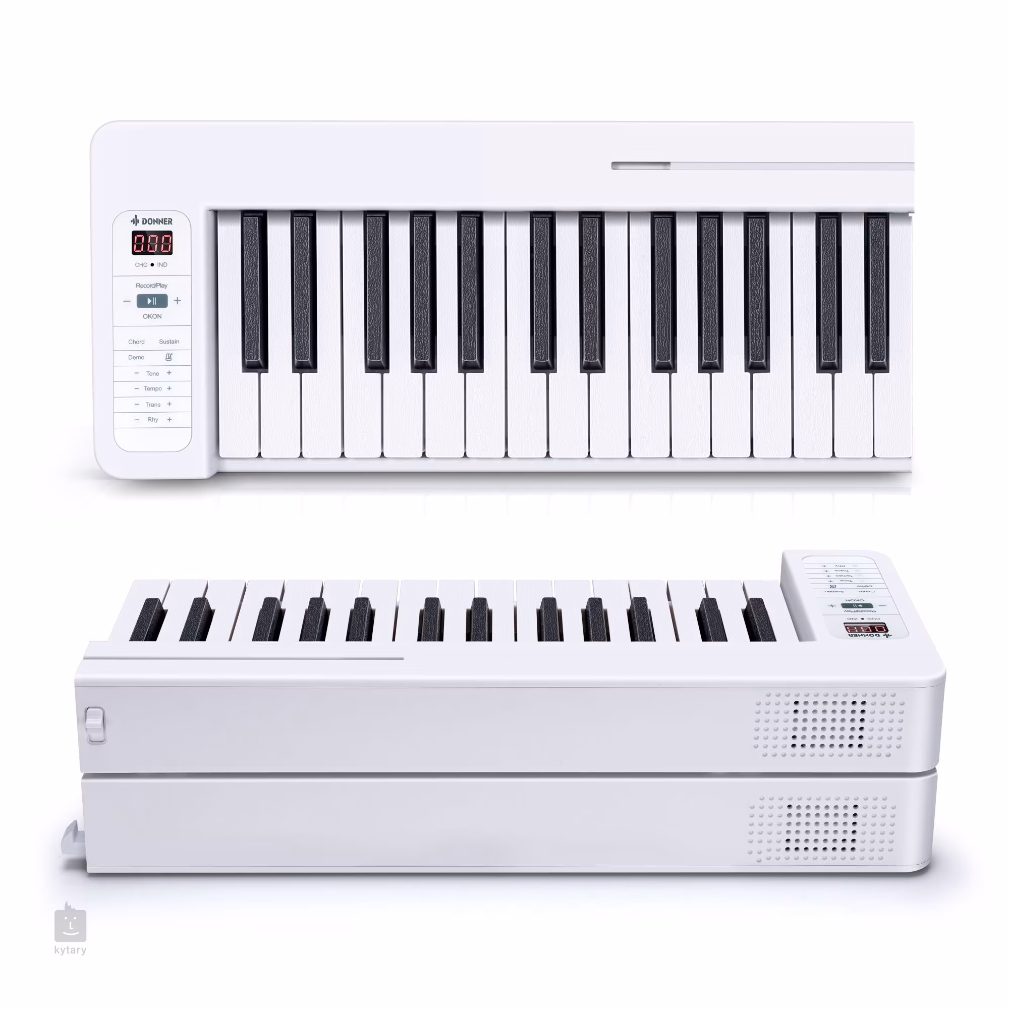 Das Instrument bietet 128 Klänge, die das gesamte Spektrum an Instrumenten und Musikrichtungen abdecken, vom klassischen Grand Piano bis hin zu Gitarren, Bläsern oder Streichern. Für eine hohe Klangqualität sorgen die 128-stimmige Polyphonie und zwei eingebaute Lautsprecher mit 5 W. Außerdem gibt es 128 Auto-Drummer-Rhythmen, ein integriertes Metronom und 21 Demo-Tracks. Anfänger werden auch die spezielle Donner Music App zu schätzen wissen, die Online-Lektionen und eine Reihe anderer praktischer Tools bietet.