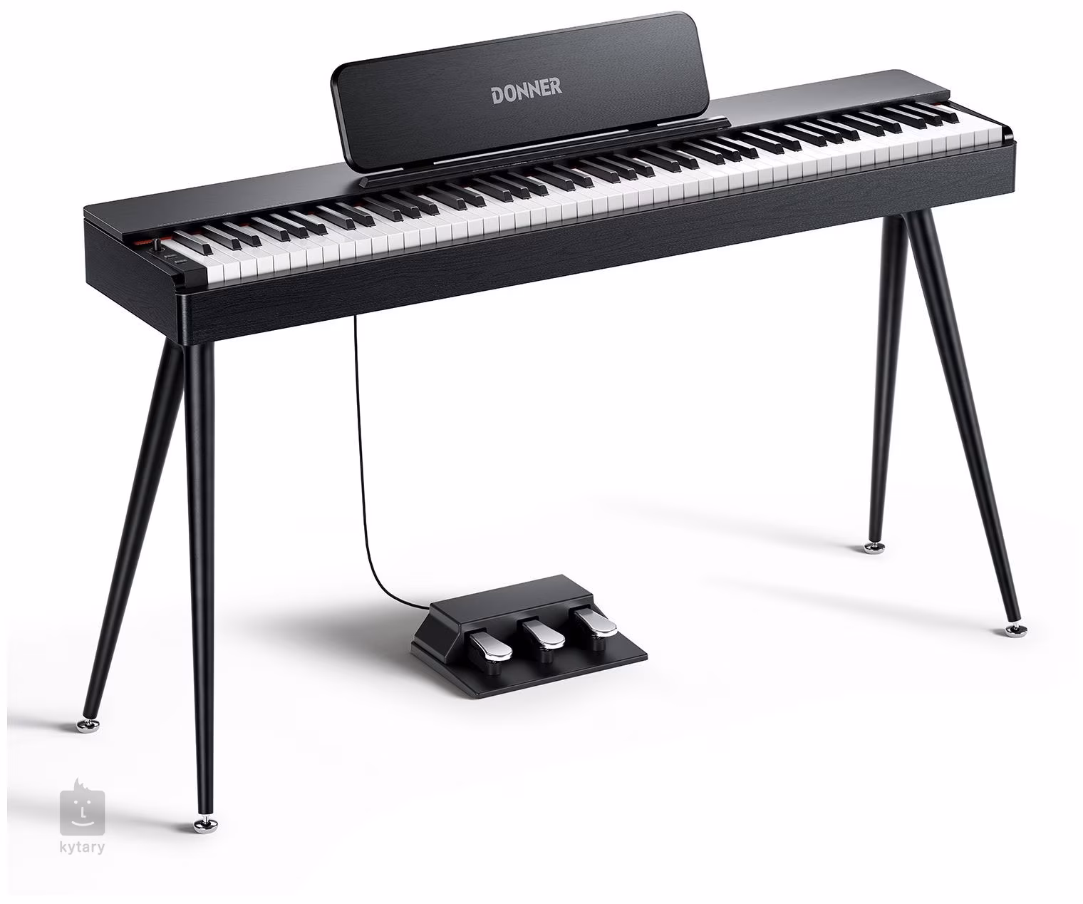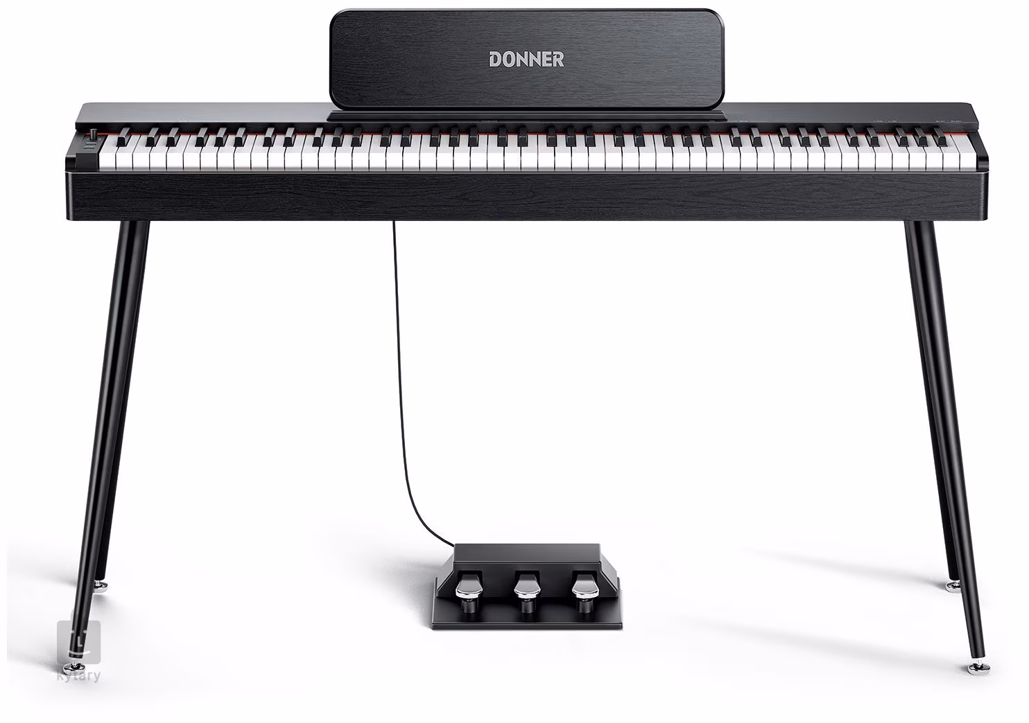 Die Klangqualität wird durch eine 256-stimmige Polyphonie und zwei eingebaute Lautsprecher mit je 10 W gewährleistet. Das Ergebnis ist ein professioneller Klang, der einen echten akustischen Flügel originalgetreu simuliert und insgesamt 15 Instrumentenimitationen bietet, darunter E-Piano, Orgel, Gitarren oder Streicher. Für das interaktive Lernen stehen zwei mobile Apps zur Verfügung - Melodics, das auf dem Prinzip der MIDI-Verbindung basiert und die Steuerung über die Tastatur unterstützt, und Donner Music, das eine Reihe von Tutorials bietet.
