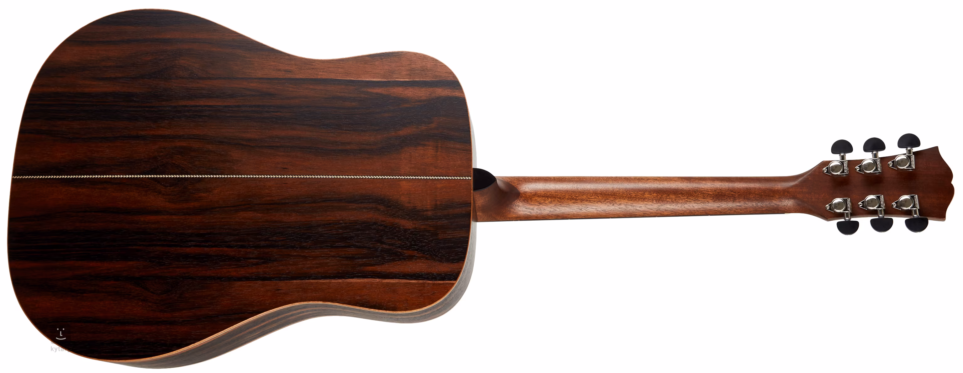 Auf den Nato-Hals ist ein ebonisiertes Hartholz-Griffbrett geleimt, das wegen seiner ähnlichen Eigenschaften als "östliches Mahagoni" bezeichnet wird. Die Stimmstabilität wird durch die Befestigung der Saiten über den Knochen-Nullbund in der Grover-Mechanik und das Hartholz-Griffbrett gewährleistet. Die feine Verarbeitung wird durch Details in Form von Mahagoni-Korpusumrandung, Fischgrät-Decke und -Bodenplatte, Zierrosette, Perlmutt-Firmenlogo auf der Kopfplatte (Abalone) und Perlmutt-Punkte auf dem Griffbrett akzentuiert.