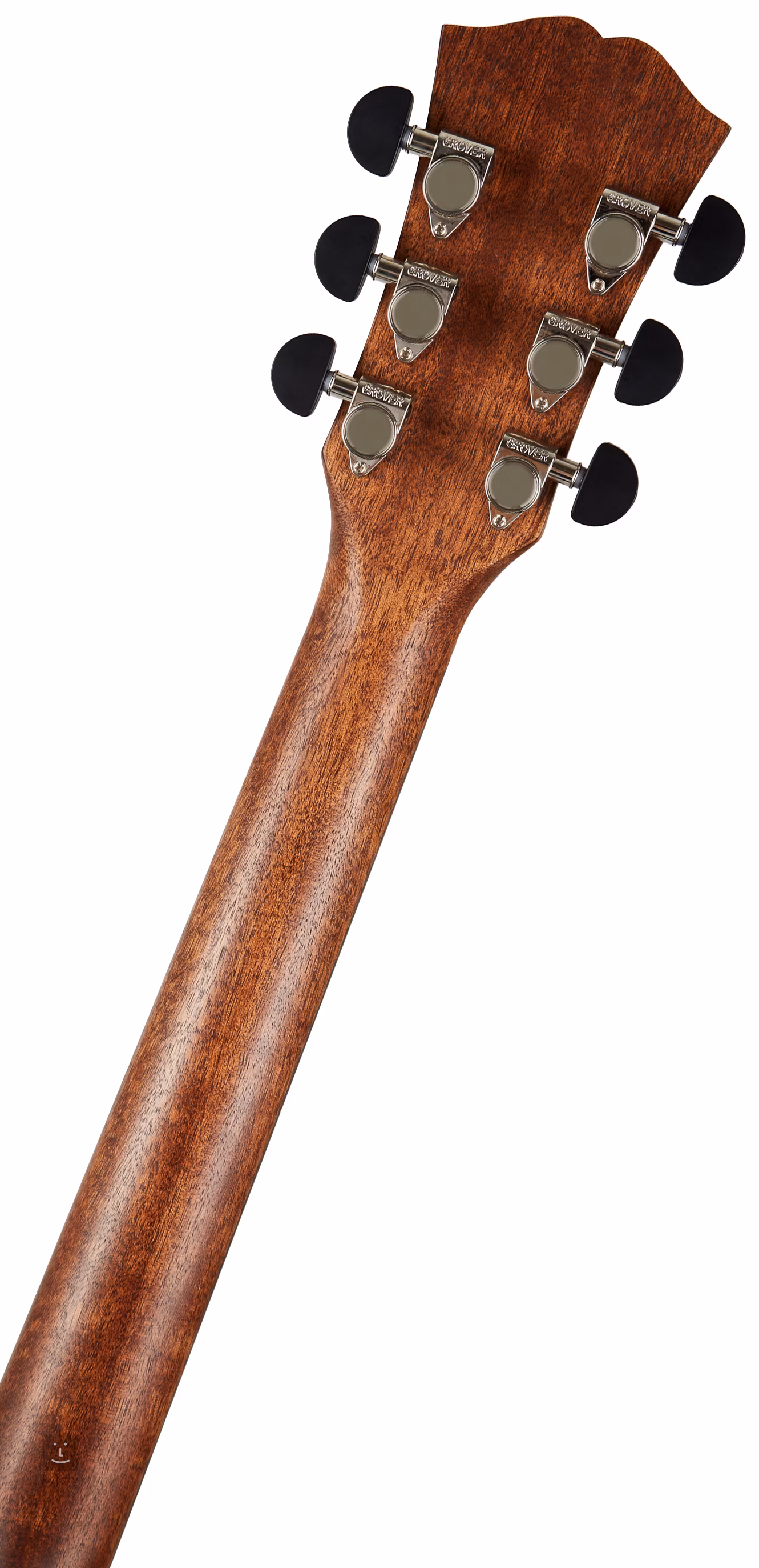 Auf den Nato-Hals ist ein ebonisiertes Hartholz-Griffbrett geleimt, das aufgrund seiner ähnlichen Eigenschaften als östliches Mahagoni" bezeichnet wird. Die Stimmstabilität wird durch die Befestigung der Saiten über den Knochen-Nullbund in der Grover-Mechanik und das Hartholz-Griffbrett gewährleistet. Die feine Verarbeitung wird durch Details in Form von Mahagoni-Korpusumrandung, Fischgrät-Decke und -Bodenplatte, Zierrosette, Perlmutt-Firmenlogo auf der Kopfplatte (Abalone) und Perlmutt-Dots auf dem Griffbrett akzentuiert.