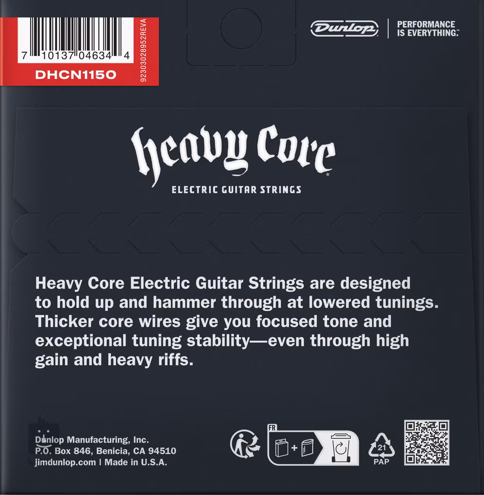 Die Saiten für E-Gitarren der Marke Dunlop aus der Heavy Core-Serie wurden speziell für Spieler entwickelt, die gerne tiefer stimmen. Ihr harter Kern ist so angepasst, dass er auch bei tieferer Stimmung einen klaren, durchdringenden Ton erzeugt und selbst bei den härtesten High-Gain-Riffs präzise Stimmstabilität bietet. Die Saiten sind mit vernickeltem Stahl umsponnen, was ihnen einen frequenzausgewogenen Klang mit klaren Höhen, durchdringenden Mitten und kräftigen Bässen verleiht. Ideal für Hard & Heavy.