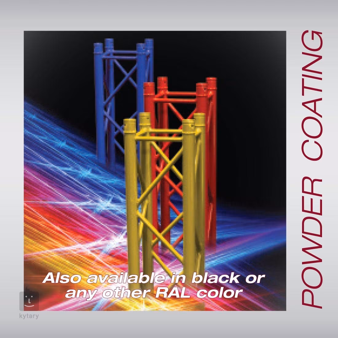 Die Konstruktion ist Teil der DT34-Serie, die eine breite Palette an Modellen und Zubehör bietet. Erhältlich sind gerade Tragwerke in verschiedenen Längen, T-Verbindungen und verschiedene Eckteile. Darüber hinaus kann eine breite Palette von Montagezubehör erworben werden. Dieses in Europa hergestellte System ist mit den meisten marktüblichen Systemen voll kompatibel und verfügt über eine TÜV-Zertifizierung, die maximale Zuverlässigkeit und Sicherheit für Ihre Podeste und Beleuchtung gewährleistet.