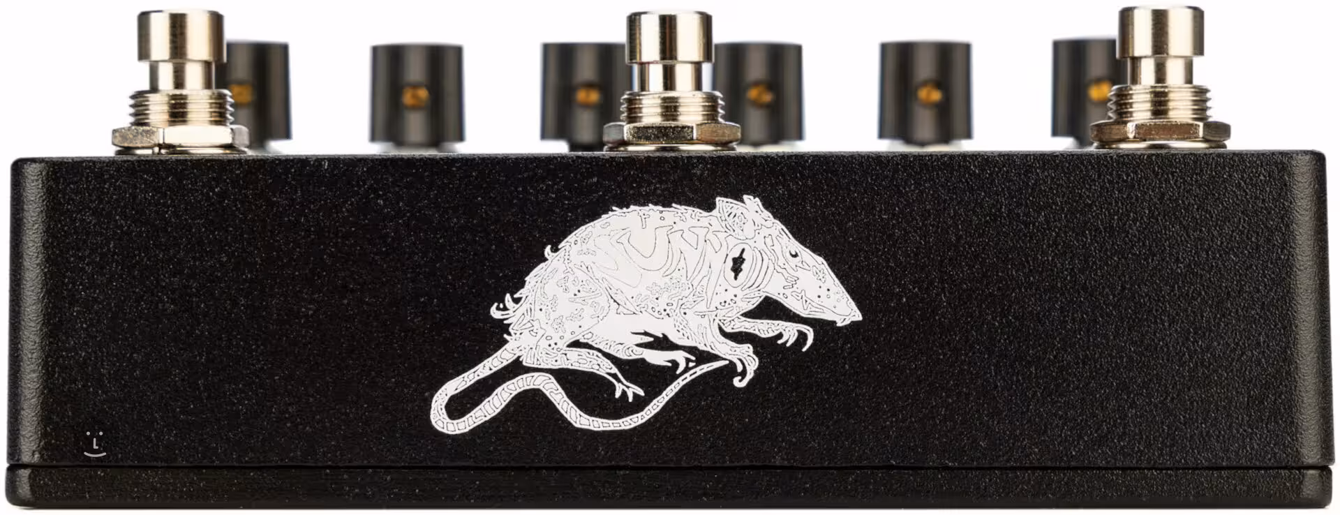 Neben dem Octave-Fußschalter auf dem Gehäuse finden Sie auch einen gleichnamigen Drehregler, mit dem Sie einen Oktav-Effekt sanft in die Verzerrung einblenden können. Es handelt sich um einen reinen analogen Mono-Effekt, der an den Verzerrer gekoppelt ist, also nur funktioniert, wenn der Verzerrer aktiv ist. Er kommt am besten zur Geltung, wenn er solo über den Halstonabnehmer oberhalb des zwölften Bundes gespielt wird, aber Sie können ihn auch beim Spielen von Akkorden verwenden, um einen chaotischen, dröhnenden Sound zu erzielen. Wenn Sie den Octave-Regler bis zum Anschlag aufdrehen, erklingt ein aggressiver, fuzzartiger Ton. Der Octave-Effekt kann mit einem externen Expression-Pedal gesteuert werden.