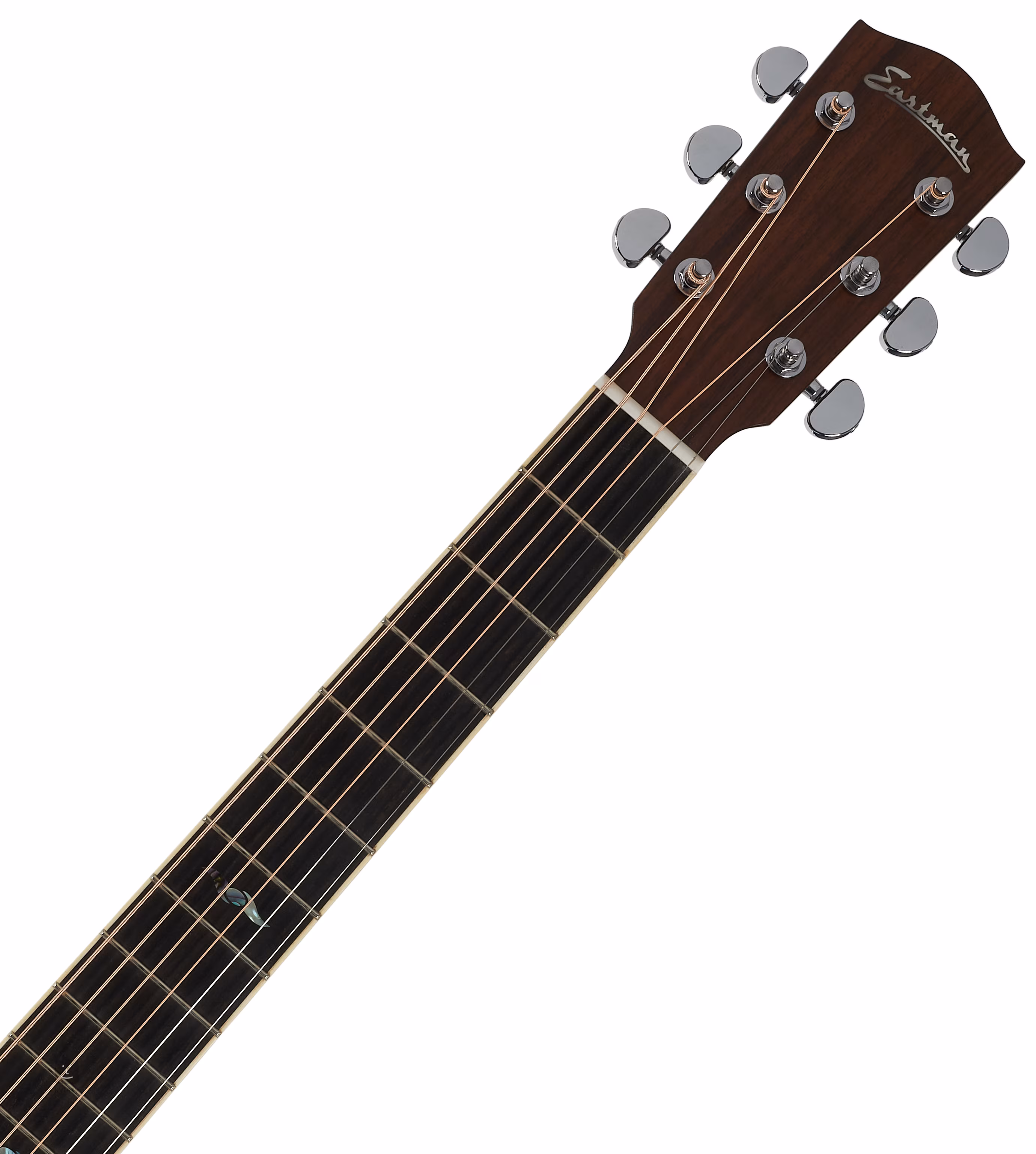 Die Eastman AC422CE ist eine vollmassive elektroakustische Gitarre im Grand-Auditorium-Stil. Die Vorderseite der Gitarre ist aus Sitka-Fichte gefertigt, während Boden und Zargen aus Palisander bestehen. Ein Ebenholz-Griffbrett mit 20 Bünden ist auf einen Mahagoni-Hals mit einem angenehmen "C"-Profil geklebt.