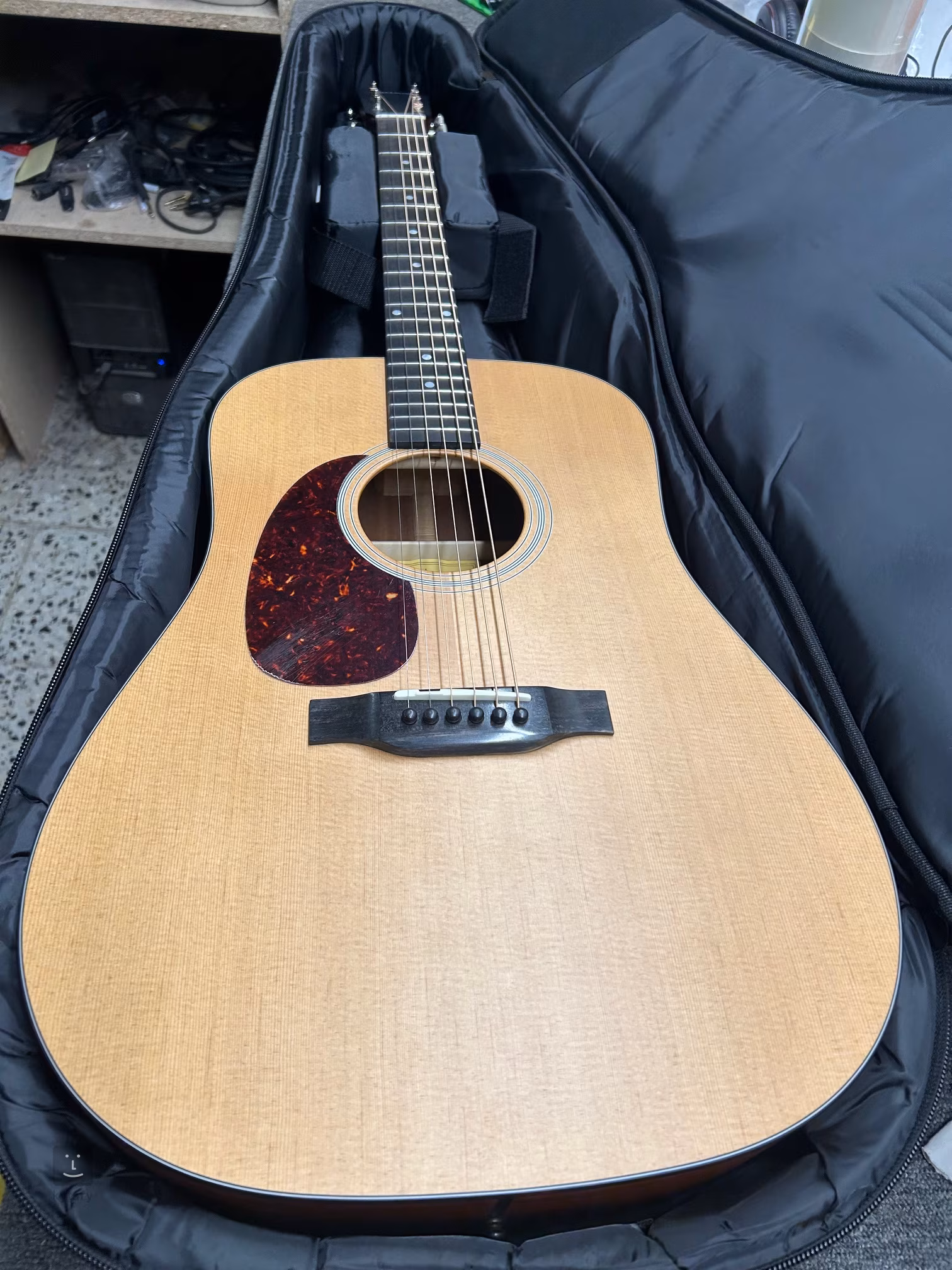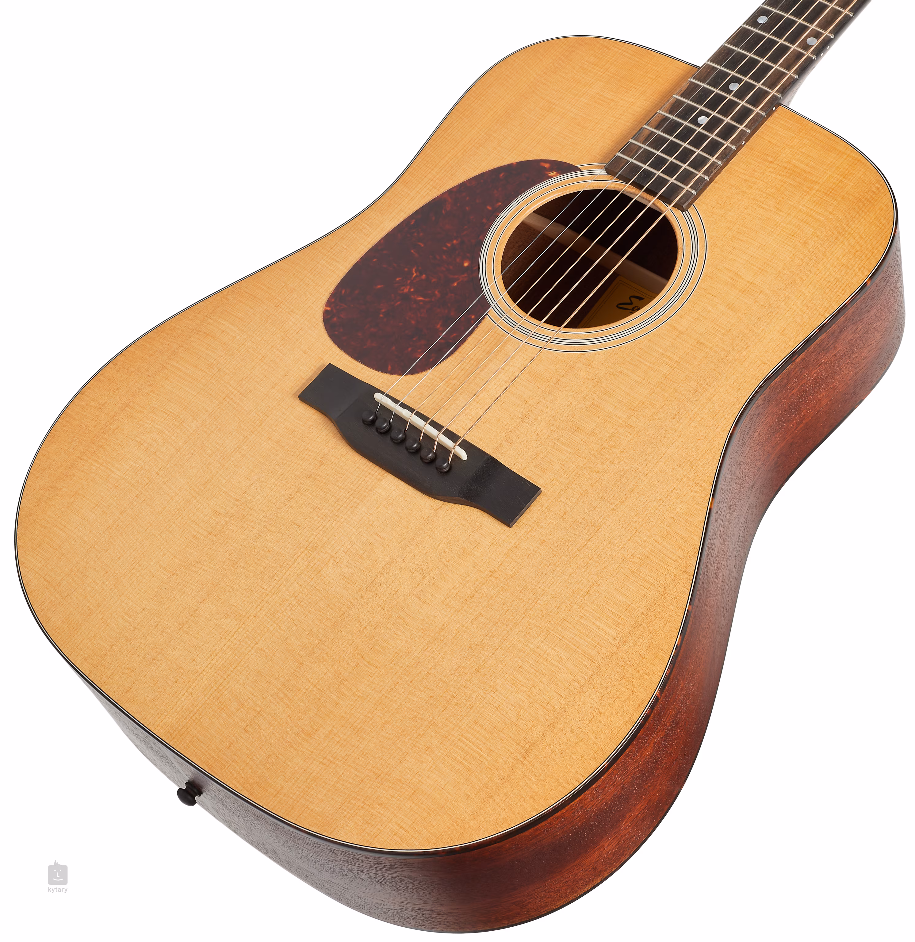 Die Eastman E1D ist eine vollmassive Akustikgitarre mit einem großen, resonanten Dreadnought-Korpus. Die Vorderseite der Gitarre besteht aus Sitka-Fichte, während Boden und Zargen aus Sapele gefertigt sind. Ein Ebenholz-Griffbrett mit 20 Bünden ist auf einen Mahagoni-Hals mit einem angenehmen "C"-Profil geleimt. Die Resonanz der Decke wird durch eine handreduzierte Riffelung (Scalloped X) unterstützt, und die Orientierung auf dem Griffbrett wird durch Positionspunkte aus Perlmutt erleichtert.