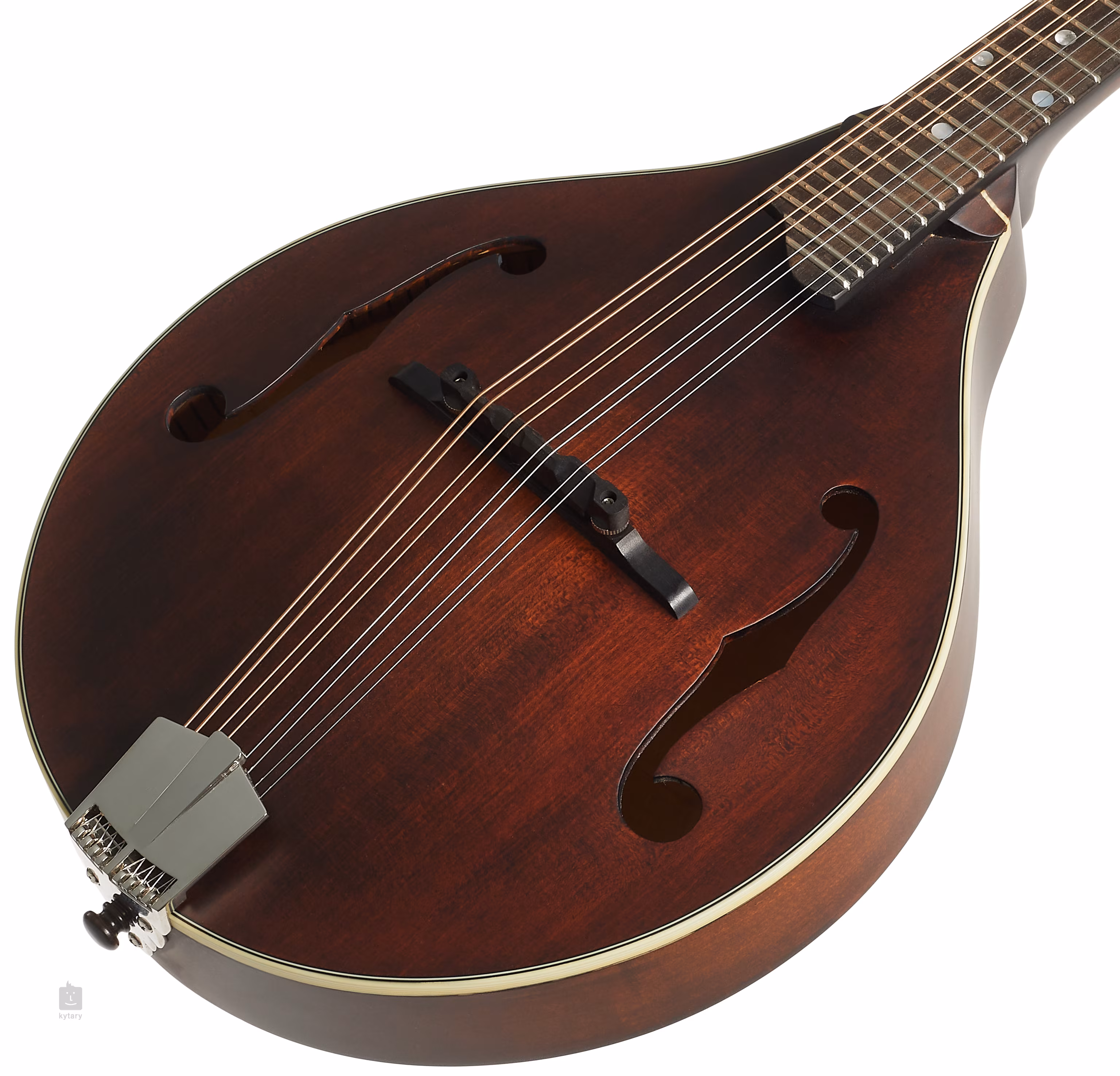 Die Saiten werden über einen Knochenbund in Proline J-105-Mechaniken und über einen einstellbaren kompensierten Ebenholzsteg in einem Aluminium-Saitenhalter gehalten. Die schöne Verarbeitung wird durch Perlmuttpunkte auf dem Griffbrett, F-Löcher an den Korpusseiten und ein elfenbeinimitiertes Perimeter-Binding akzentuiert.