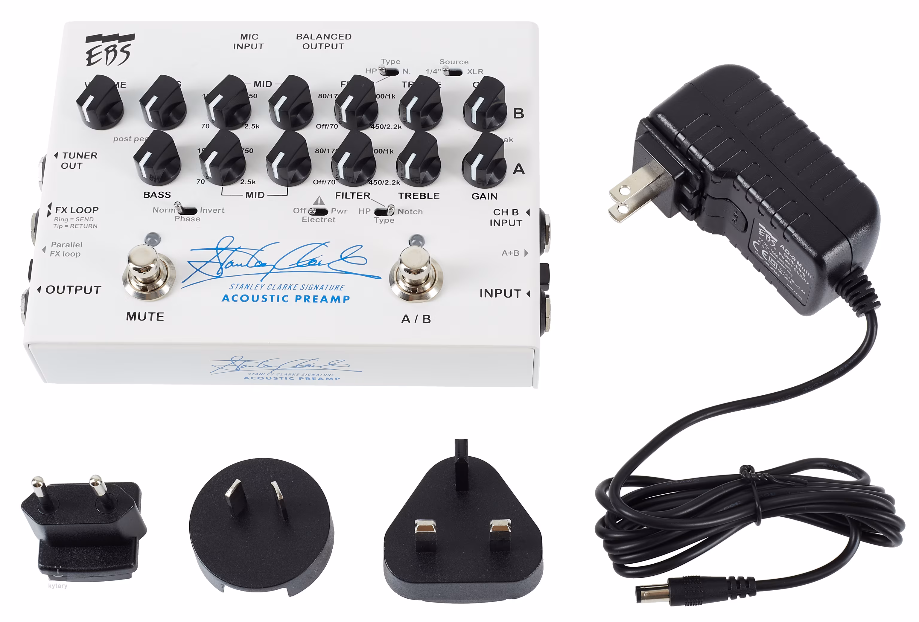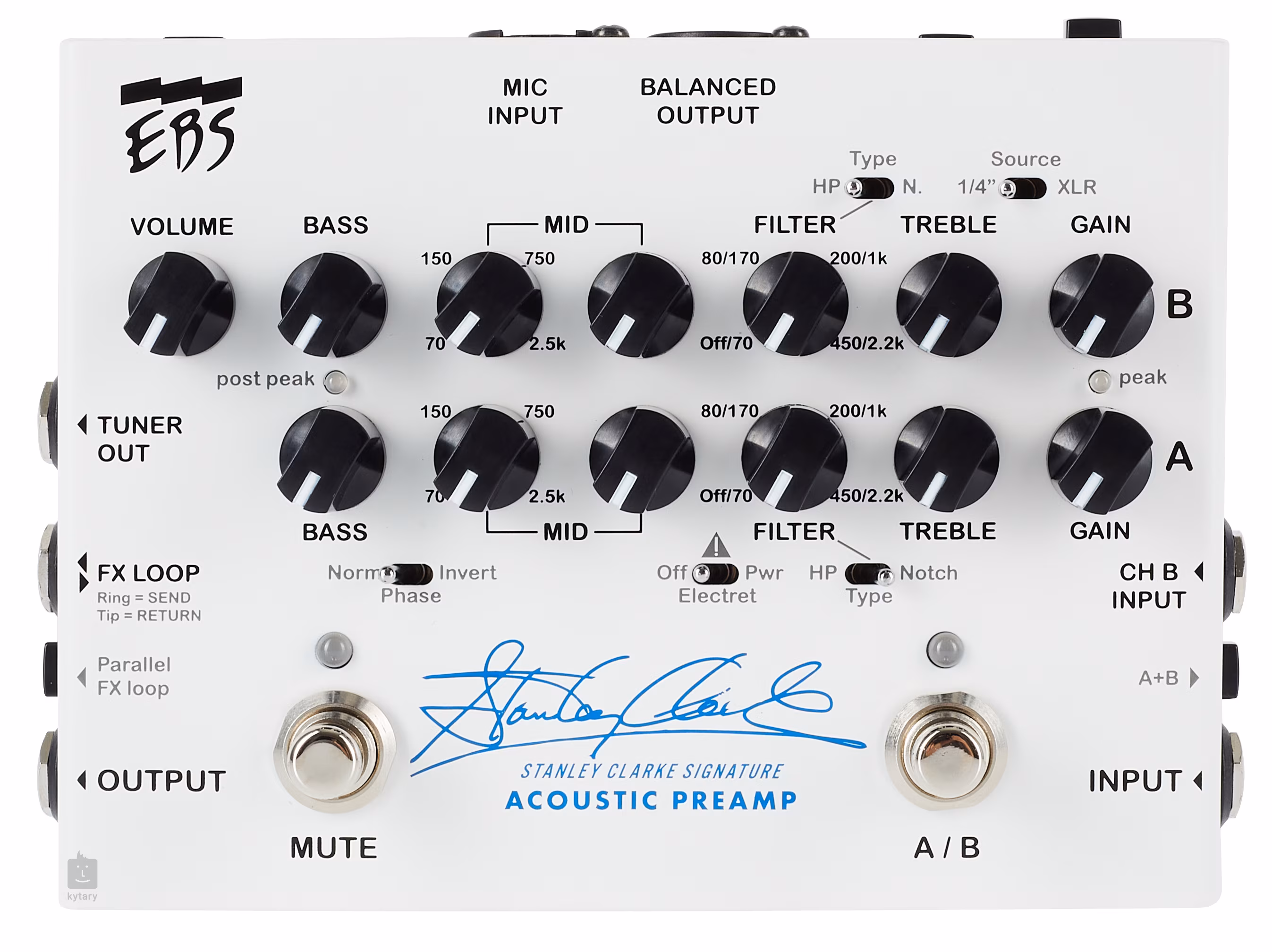 Dieser einzigartige Vorverstärker für akustische Bässe wurde in Zusammenarbeit mit dem Bassmatador Stanley Clarke entwickelt. In diesem zweikanaligen Vorverstärker finden Sie hochwertige Komponenten, die Ihnen eine professionelle Klangqualität bieten, und er kann neben dem Kontrabass auch andere Instrumente verarbeiten. Er verfügt über zwei Kanäle, die mit 10-Ohm-Widerstandseingängen ausgestattet sind und sowohl mit aktiven als auch mit passiven oder Piezo-Tonabnehmern hervorragend funktionieren. Jeder Kanal verfügt dann über einen separaten Regler für Gain, Hi-Pass/Notch-Filter, Dreiband-EQ mit wählbaren Mittenfrequenzen oder einen gemeinsamen Lautstärkeregler.